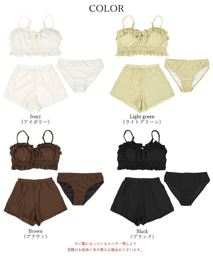 他の画像を見る 【seadress】 3点セット/フリルデザインジャガードビキニ×ショートパンツ/水着【SEADRESS シードレス】 価格 ¥ 5,929 税込 販売期間 2026/02/06 11:00 〜 2026/05/06 10:59 お気に入りに登録する