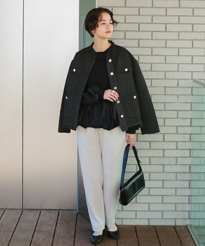 ・トレンドのツイード素材を使用したジャケット。