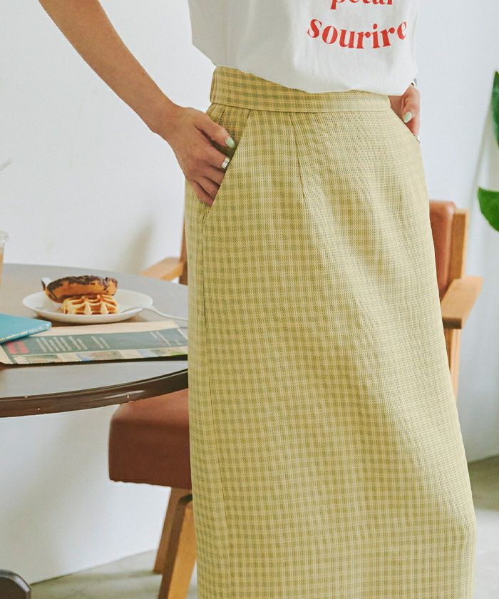 ・凹凸感のある生地が特徴的なロング丈スカート。