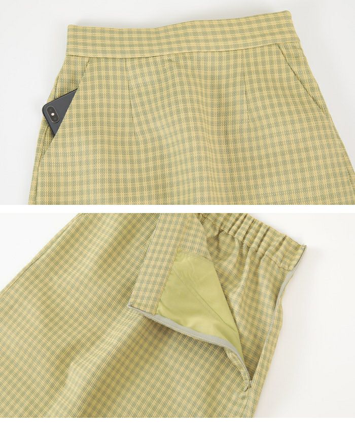伸縮性はありませんが、程よいタイト感とチェック柄で可愛いです。