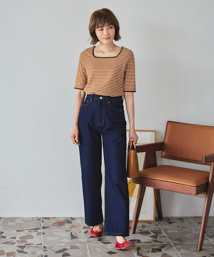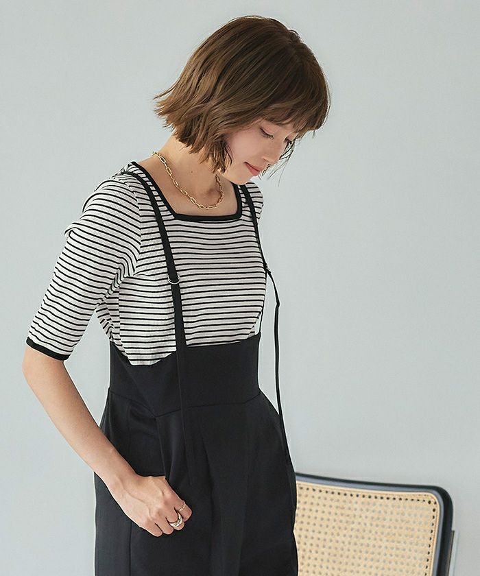 ・首元がスッキリ見えし、女性らしいスクエアネックトップス。