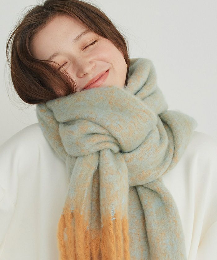 ・シンプルなアイテムに合わせるだけでコーディネートにアクセントを加えてくれるメランジマフラー。