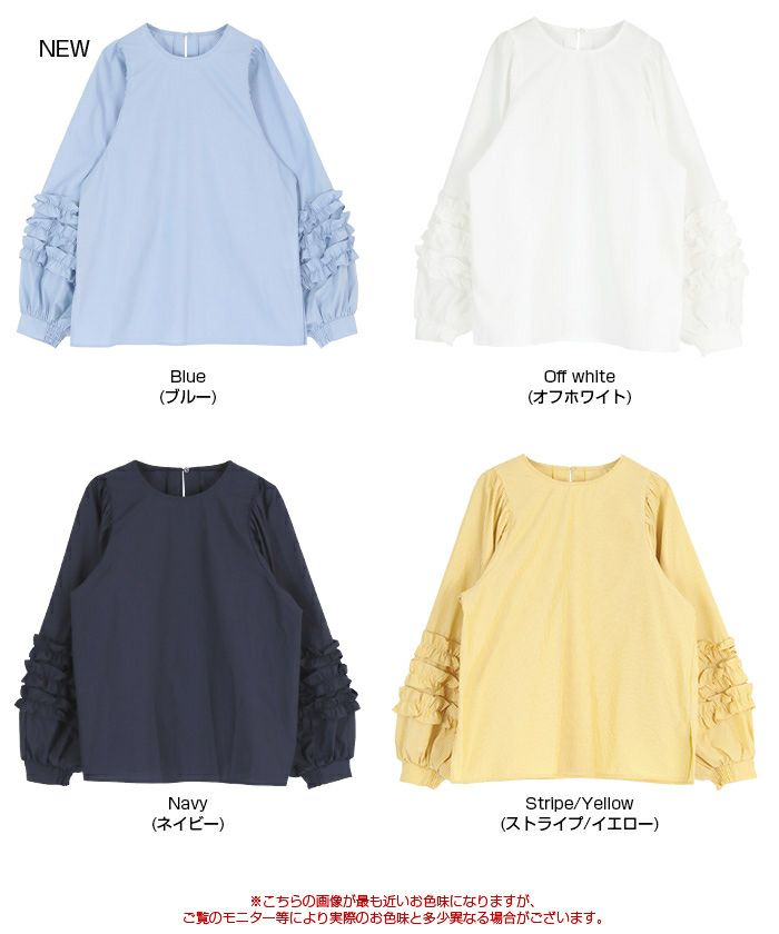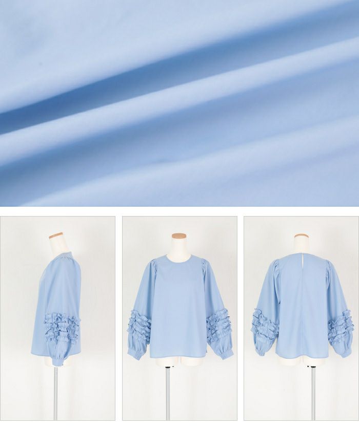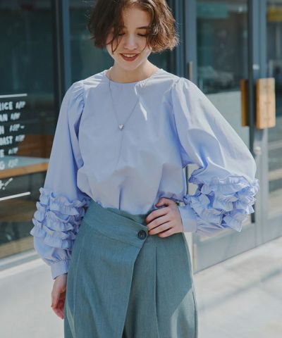 ・袖のフリルデザインが目を惹くギャザーブラウス。