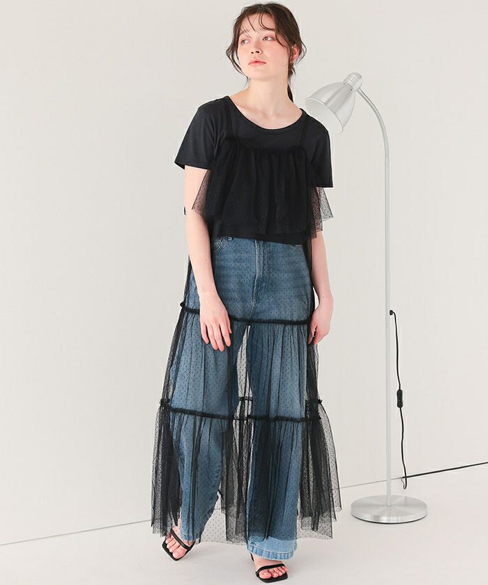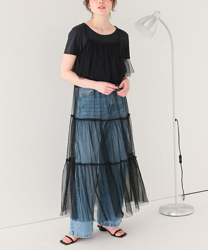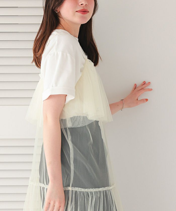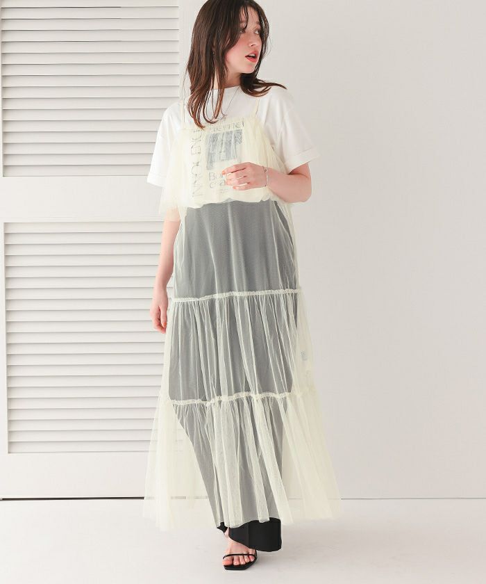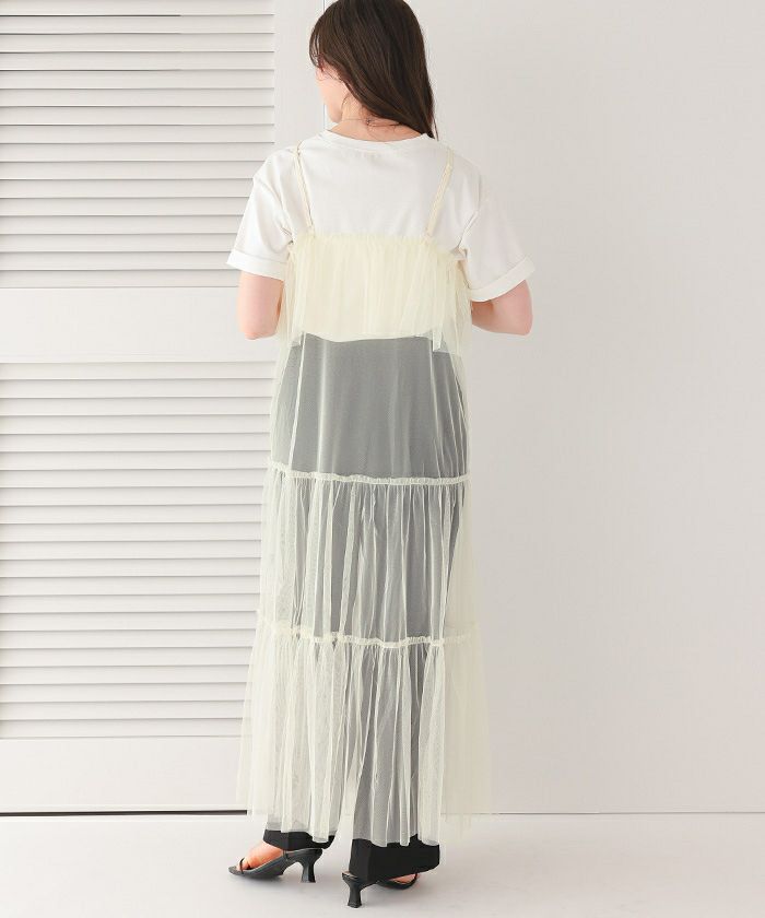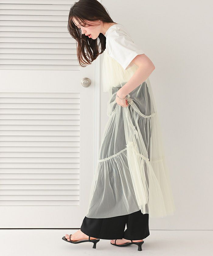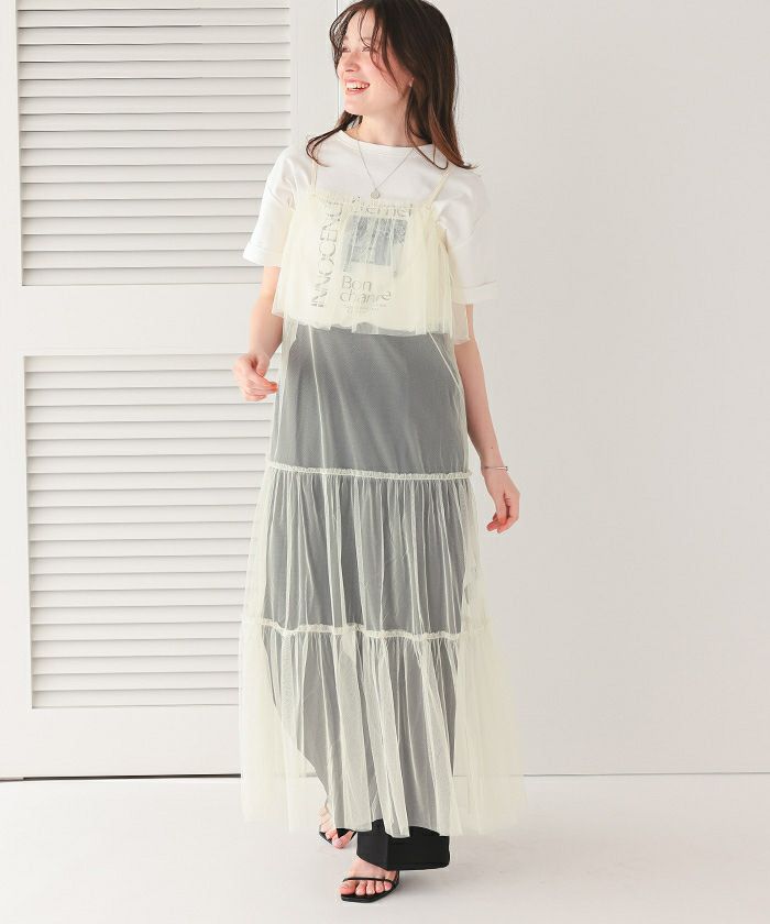 可愛いチュールワンピースです。カラーはエクリュを購入しました。着丈が短めな同系色のワンピースに重ねて着たり、ショートパンツやミニスカートに合わせて着ても可愛いです。