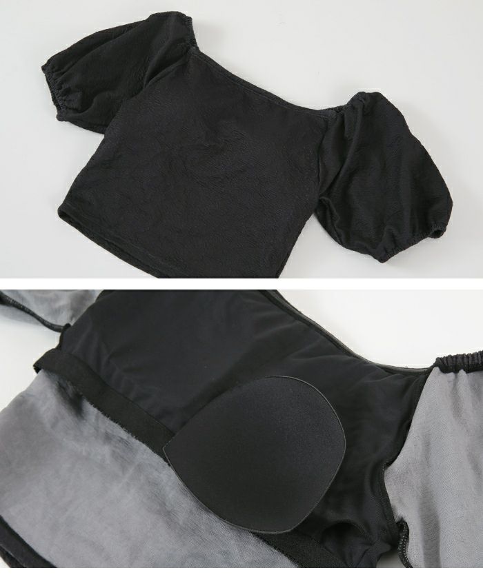 ・カップ付きのトップスはデイリー使いできるデザイン。スクエアネックやオフショルダーなど好きなバランスに合わせてスタイリングができます。