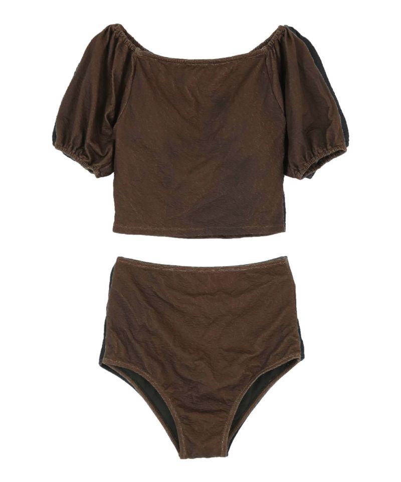 水着にしては珍しい生地感で、オフショルでトップスとして着ても良さそうです!