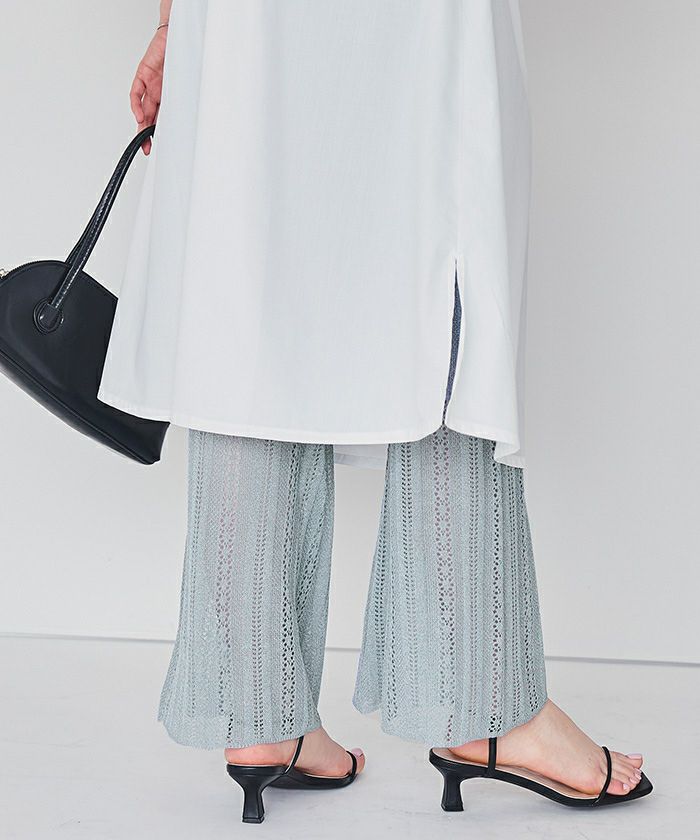 ・縦ラインの透かし編柄なので足を細く見せる。
