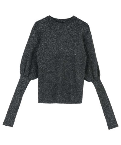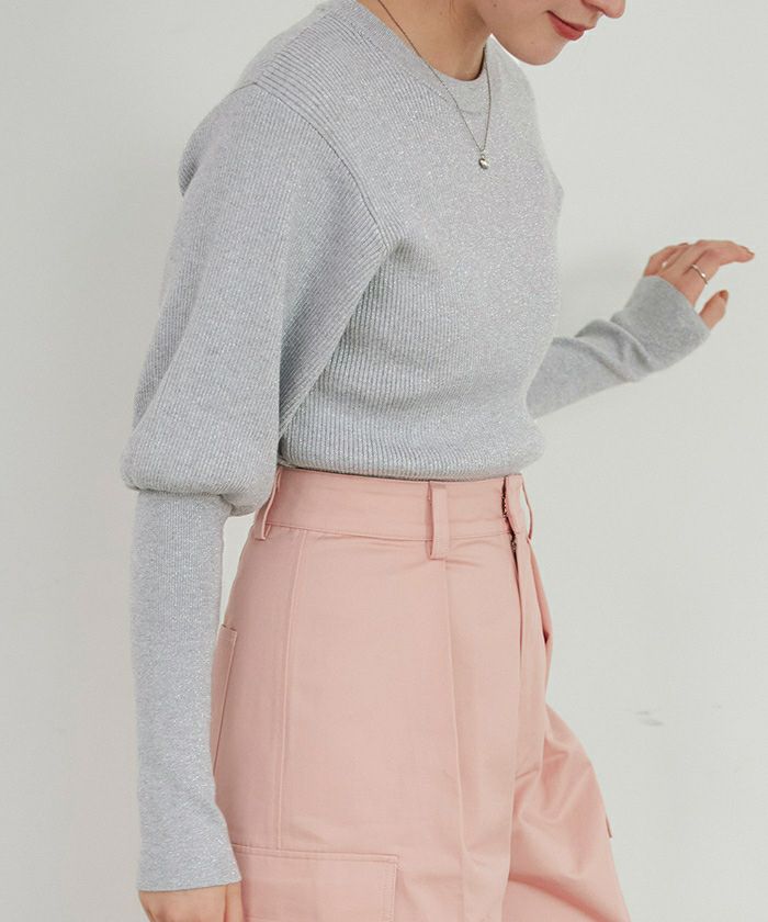 パフスリーブラメリブニットプルオーバー