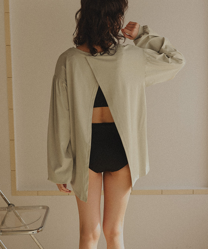 ・水陸両用の素材を使用しているので、水着だけでなくインナー使いとしてデイリーにスタイリングもできる優秀アイテム。