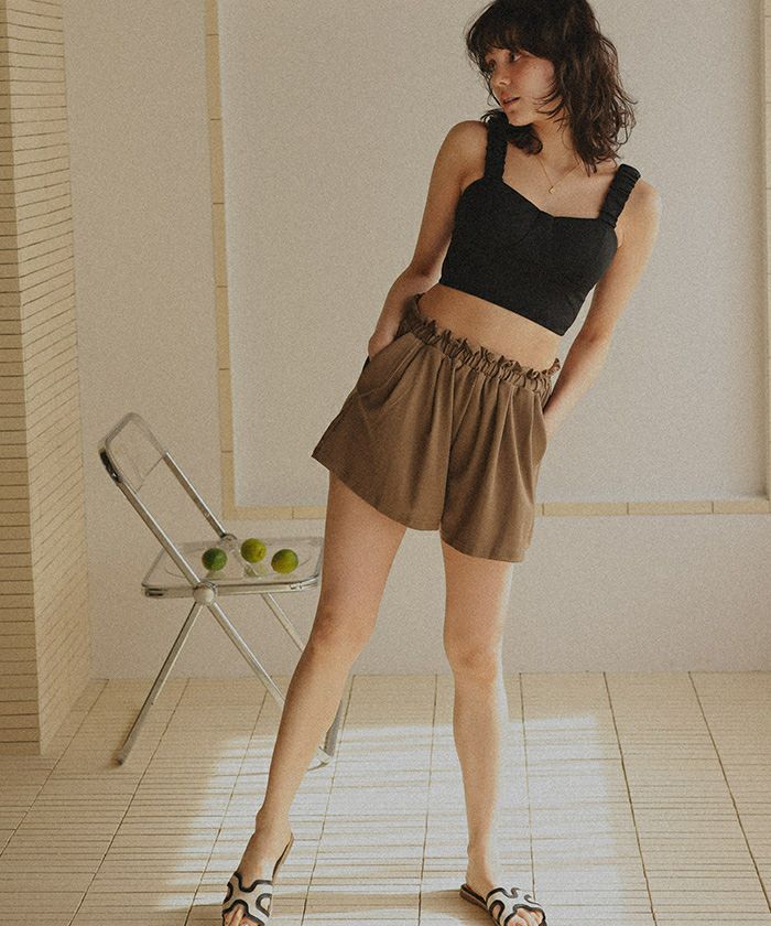・ノンワイヤーでストレスフリーなフィット感+ハイウエストショーツでスタイルアップ◎