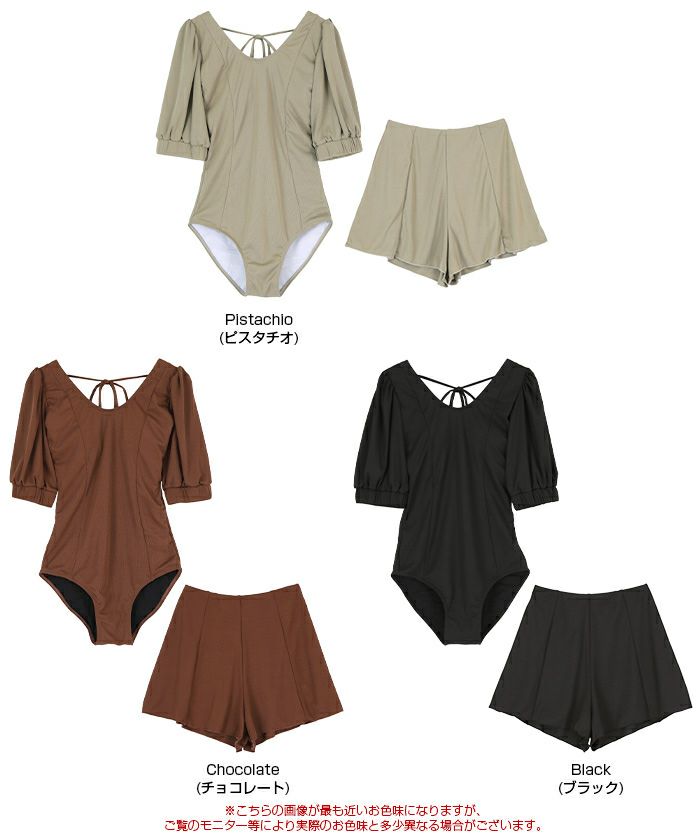 ・柔らかく伸縮性の良い細リブ素材の2wayワンピース水着×ショートパンツ付き2点セット。