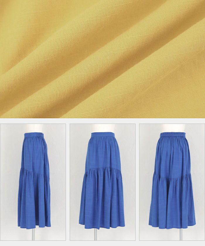 ・マキシ丈で上品な印象をプラスしてくれるティアードフレアスカート。
