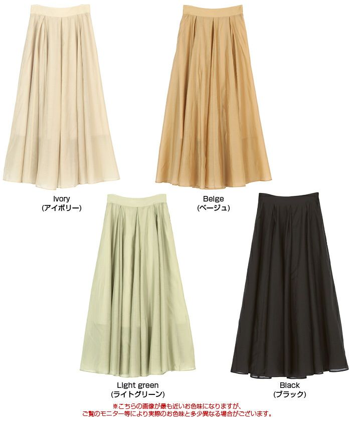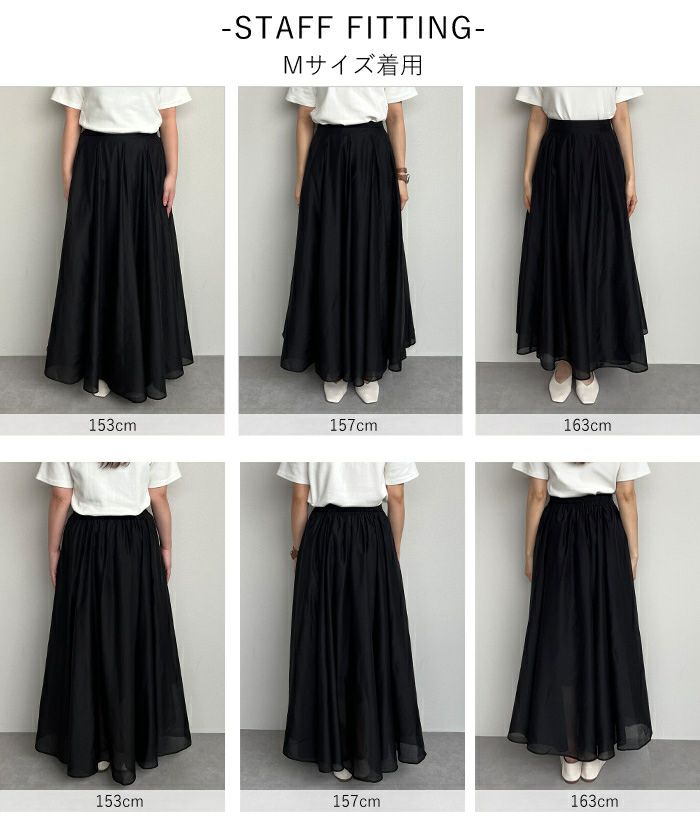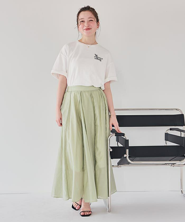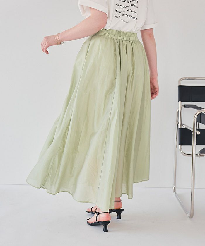 ・シアー素材で抜け感を演出するロング丈スカート。