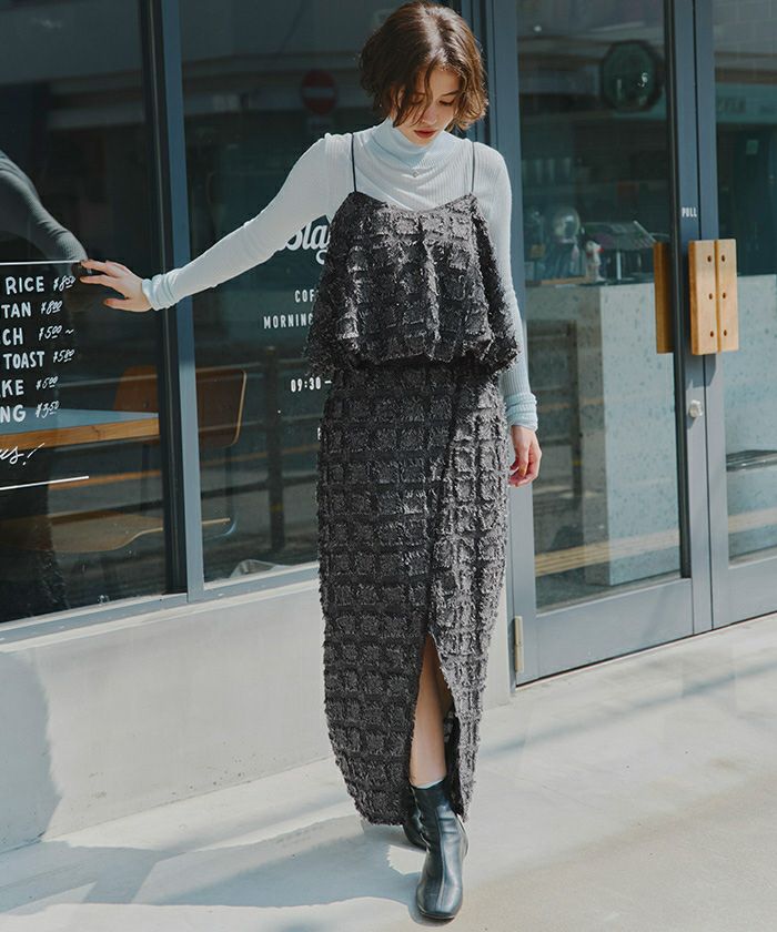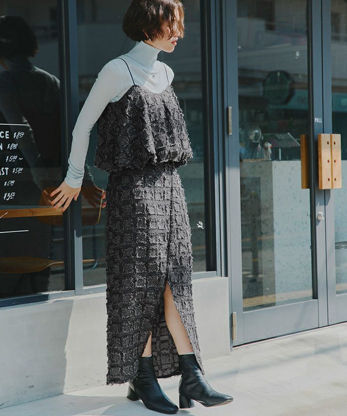 ・同素材のビスチェ(AEJR0618/ベージュ・ブラック)とセットアップ風にご着用いただけます