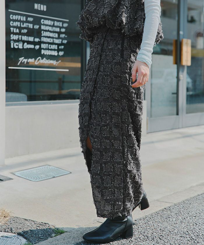 153センチ、45キロ、Sサイズ、白黒。 あたしの体型では全体的に大きかったです。 丈に至っては2回巻いてちょうどよいです。ズルズル感をあえて強調したデザインだとは思います、そういったデザインに着慣れておらず。 生地は薄めでスリットも膝辺りまでパックリ空いているため、冬は少し寒いです。 でも、黒タイツにブーツ合わせはかなり可愛い! 寒い覚悟で、着込んで勝負してください。 夏ももちろんいけます! 逆に涼しくて着やすいかもしれないです。 秋冬以外は黒タイツ合わせができず、前スリットから素足が覗き少し恥ずかしいため、前後反対に履いて後ろスリットにしています。