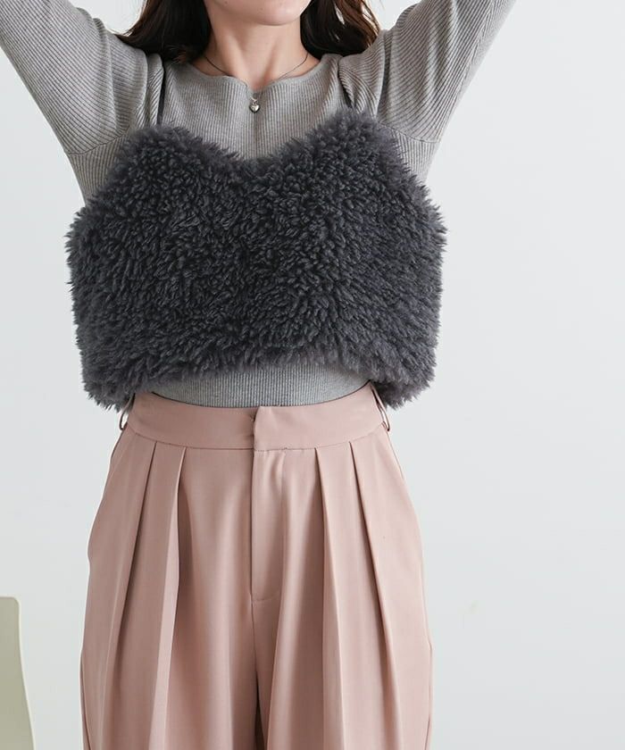 ・羊のような、ふわもこ感が可愛いキャミソール型のビスチェ