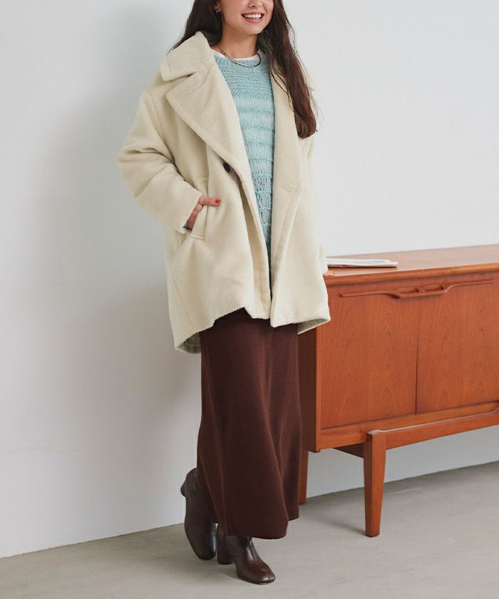 アウターを探していたところ、デザインに惹かれ購入しました。 シンプルで着回しもしやすく、顔回りもスッキリ見えるのですごく気に入ってます! この冬沢山着たいです♪♪