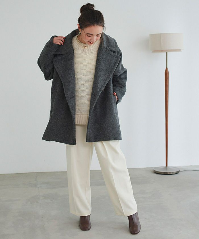 ・ダブルボタンとゆったりしたシルエットが、シンプルながらもクラシカルで今っぽいスタイルに