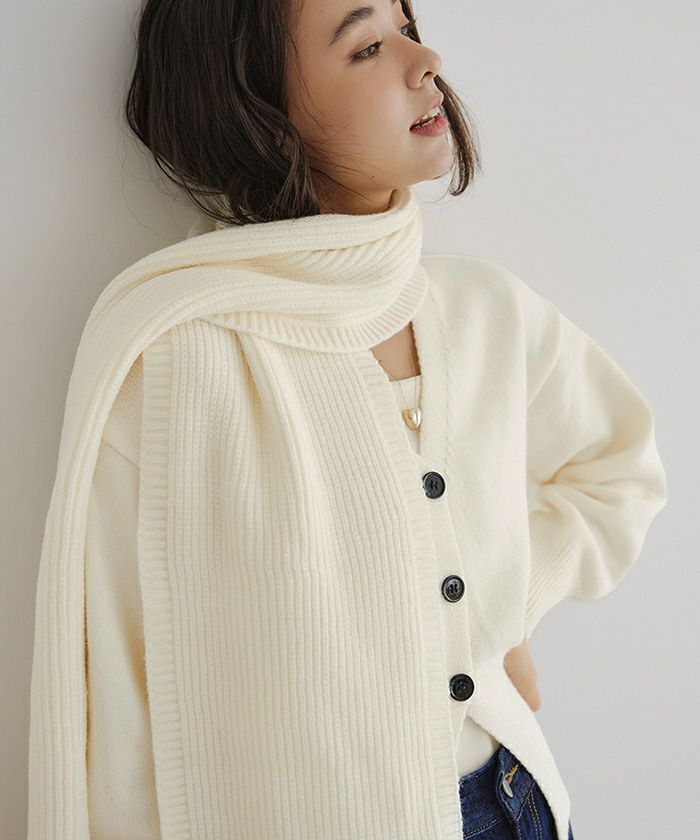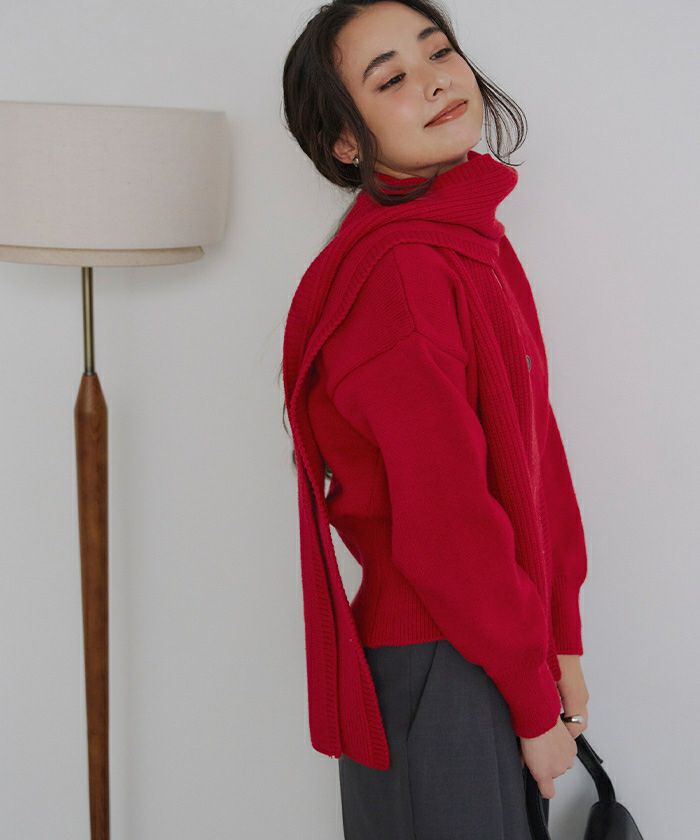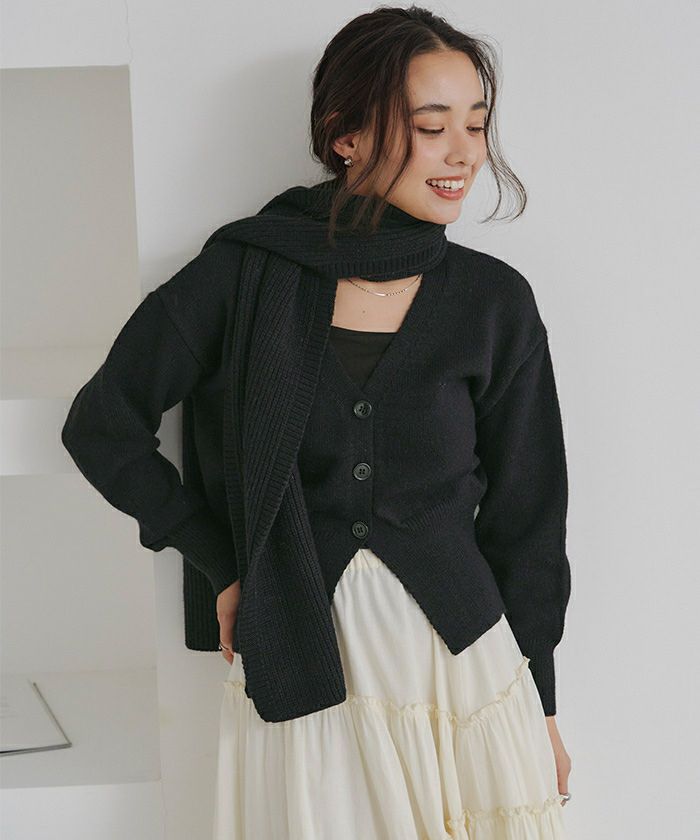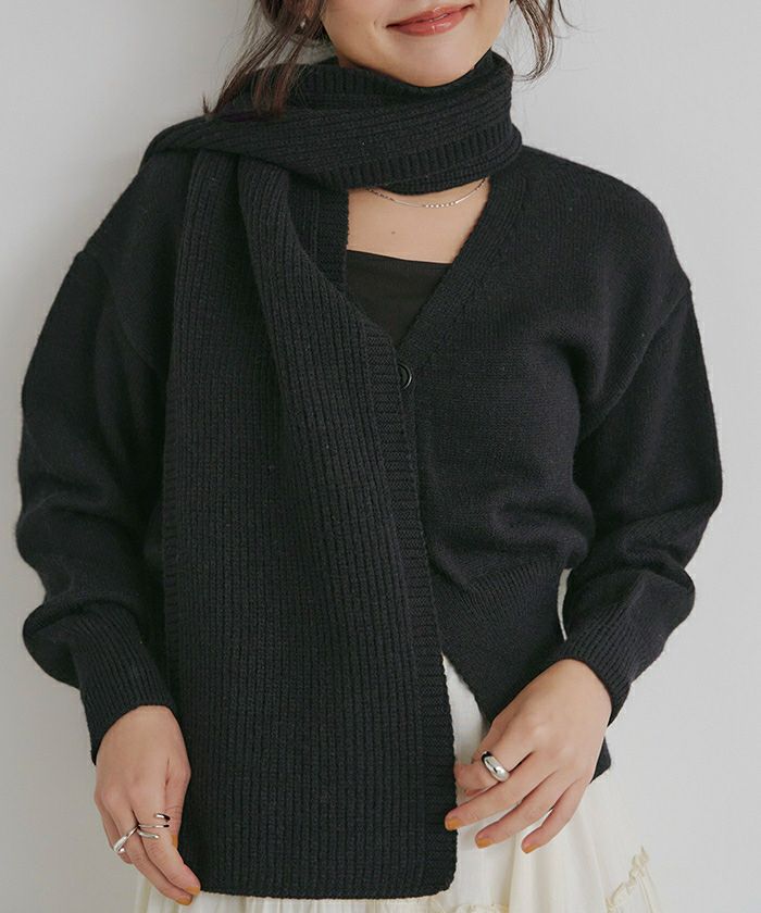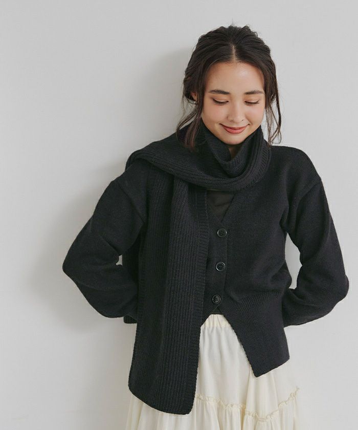 ・防寒とデザイン性を兼ね備えたマフラー付きカーディガン