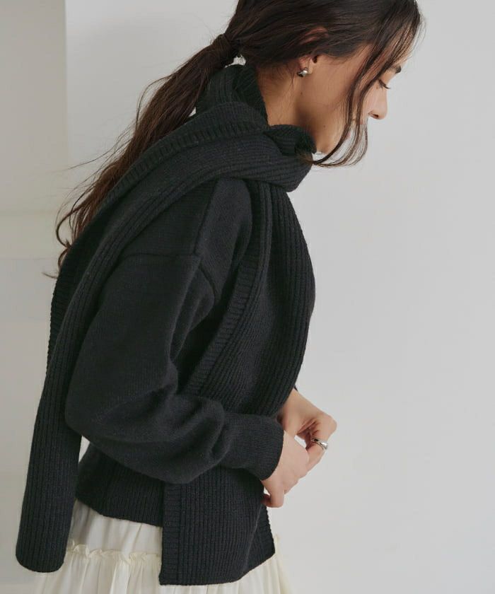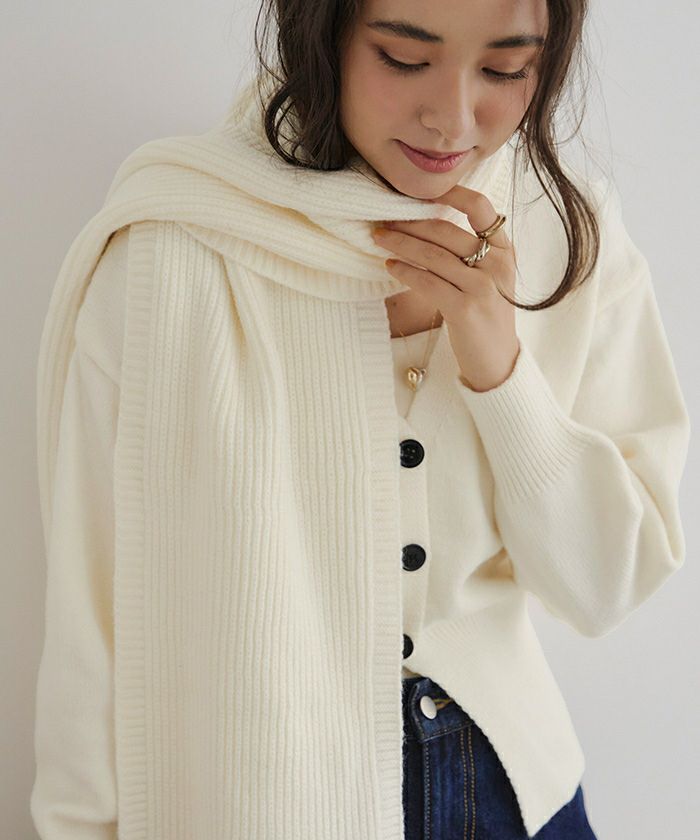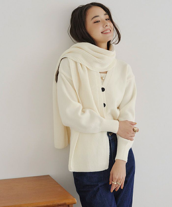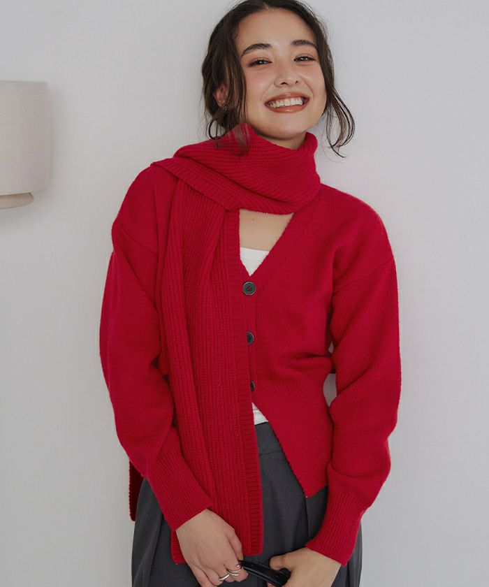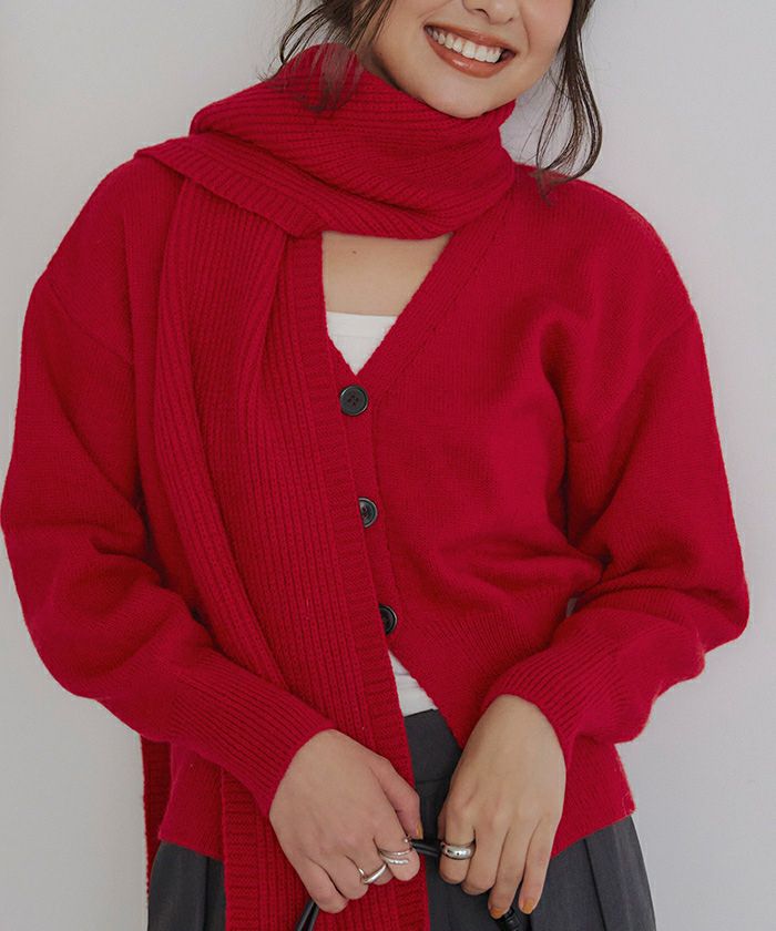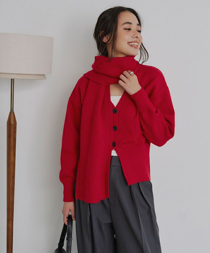 ・防寒とデザイン性を兼ね備えたマフラー付きカーディガン