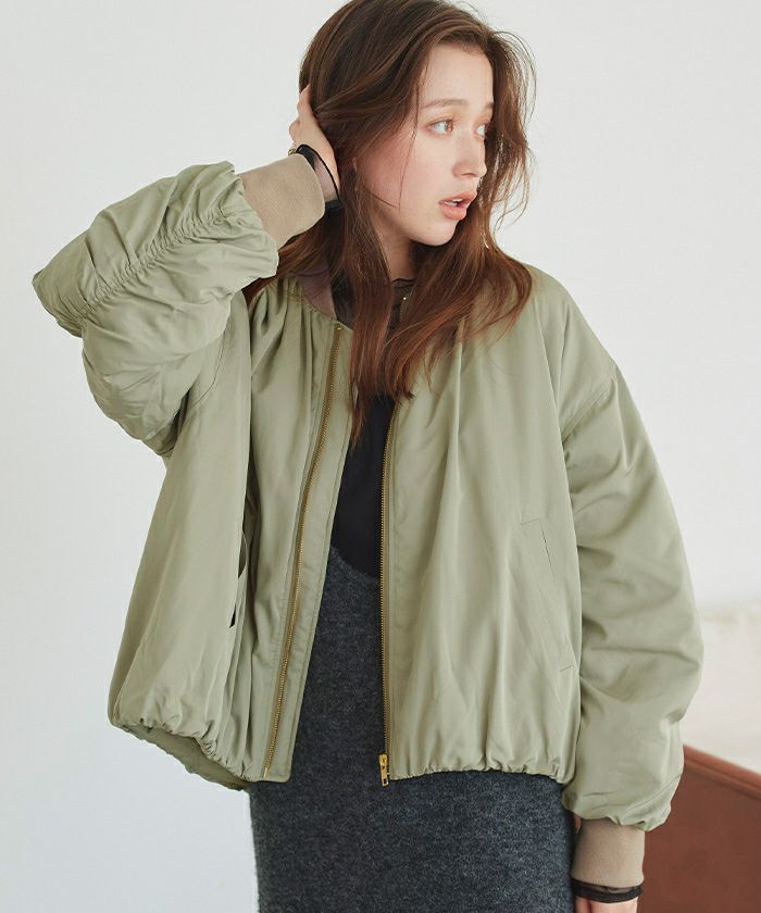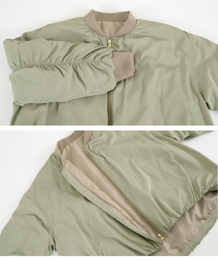 ネイビーを購入しました。ゴールドのファスナーと合わさりシックな色合いで素敵です。軽いのに暖かいし、裾を絞ると丸みを帯びたシルエットになり、とても可愛い。ただ届いた時のシワが酷くて、たたみジワだけではなく、どうやったらこんなにシワが付くのかというほどでした。なんとかアイロンで整えましたが、大変だったので、マイナス星1です。