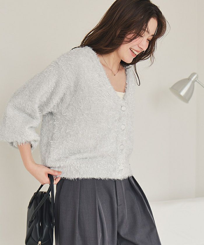 ふわっとラメシャギーニットカーディガン