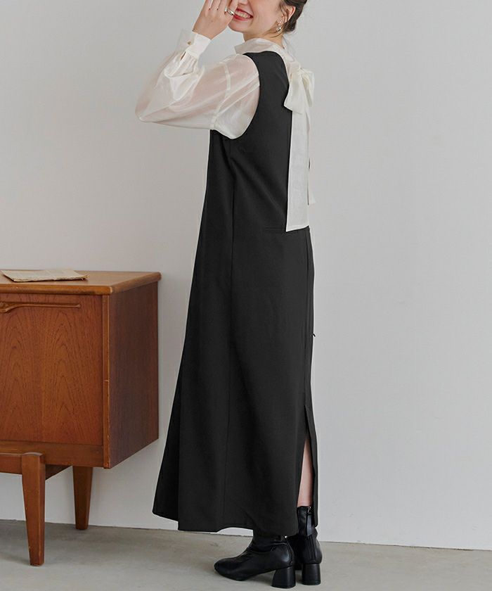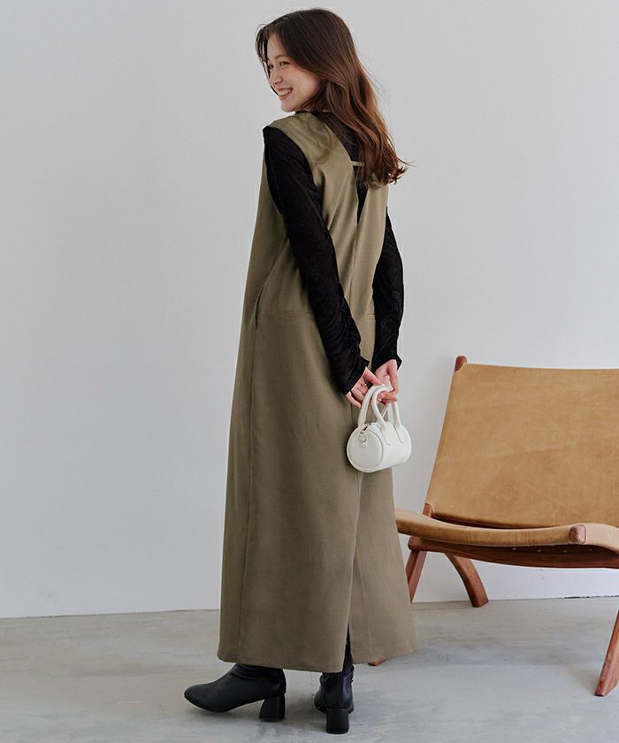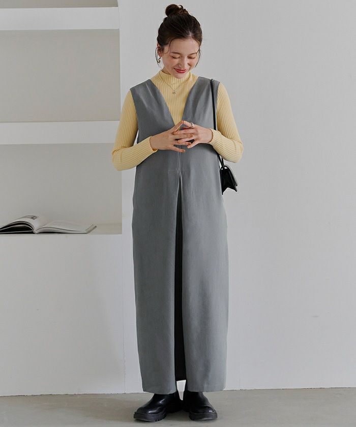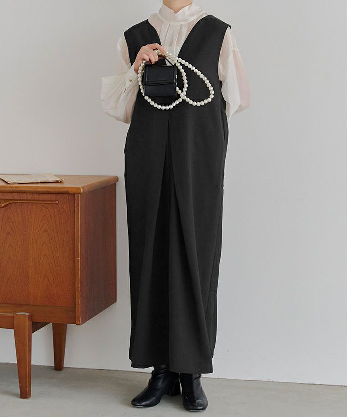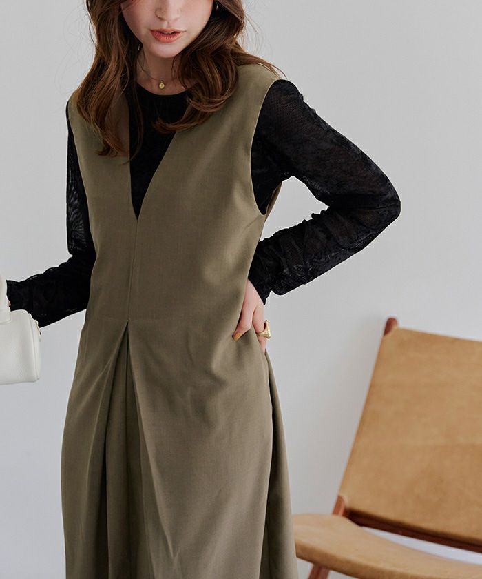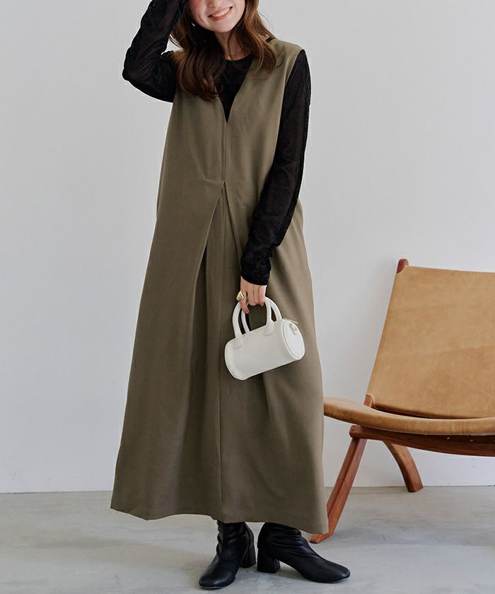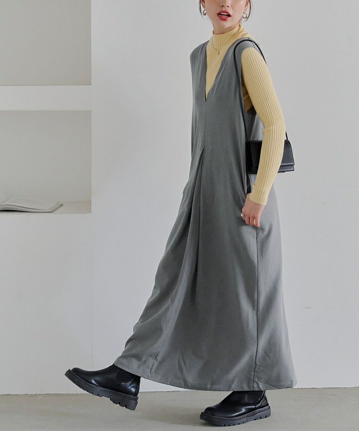 フロントタックVネックジャンパースカート