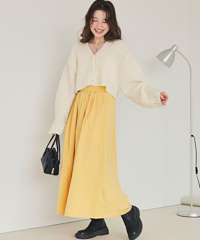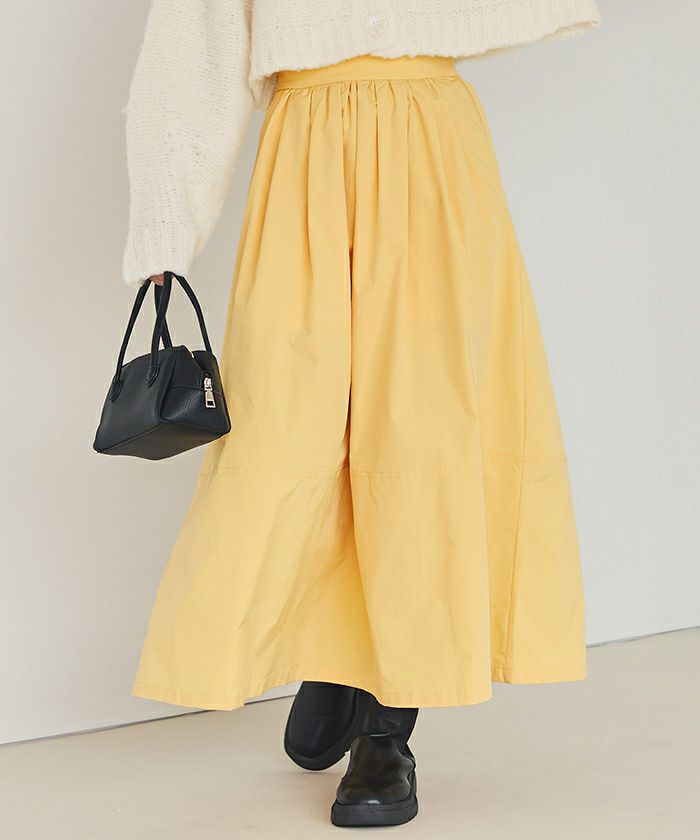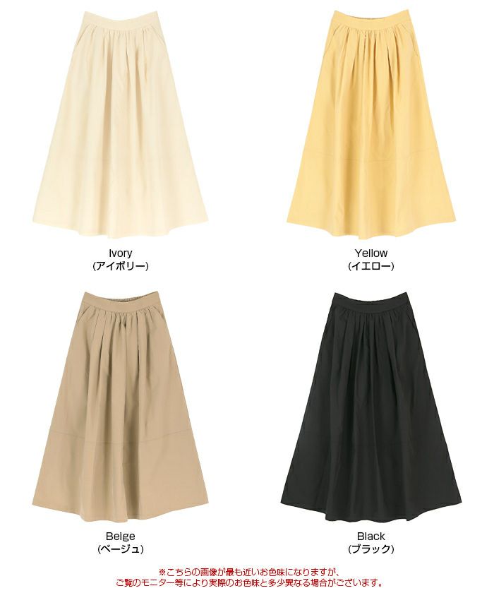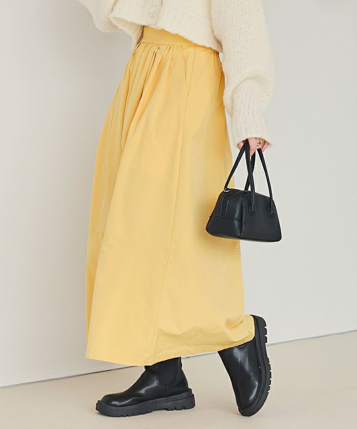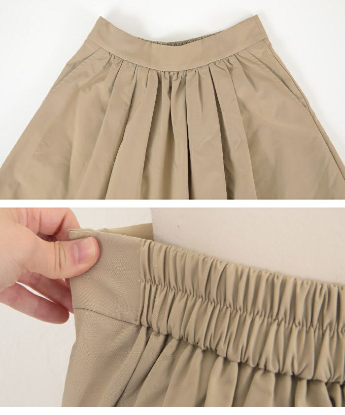 ・程よく張り感のある素材できれいなAラインシルエットのタックギャザースカート