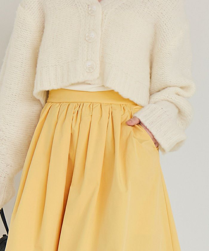 裏地無しで、ギャザースカートらしいボリューム感です。 黄色がいい色。
