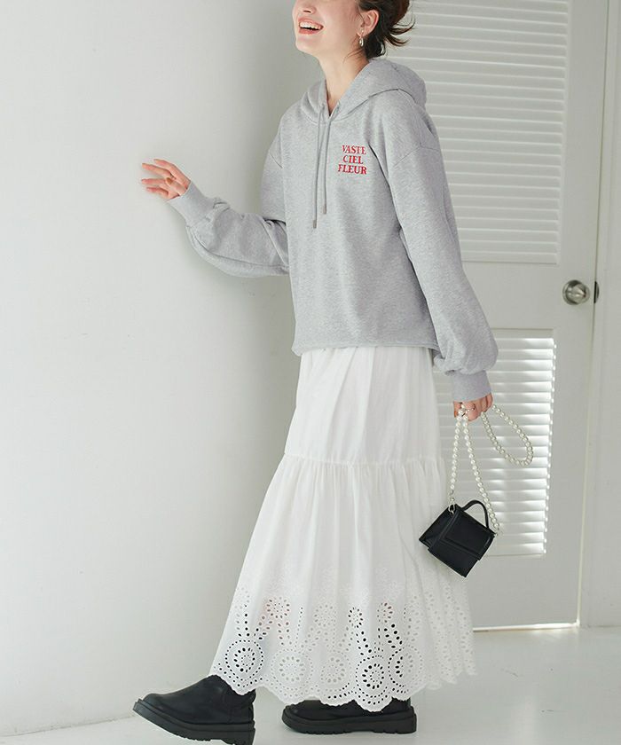 ・胸元にロゴ刺繍と、袖裾部分にハート刺繍をあしらった、ワンポイント刺繍が可愛い着回し抜群スウェット。