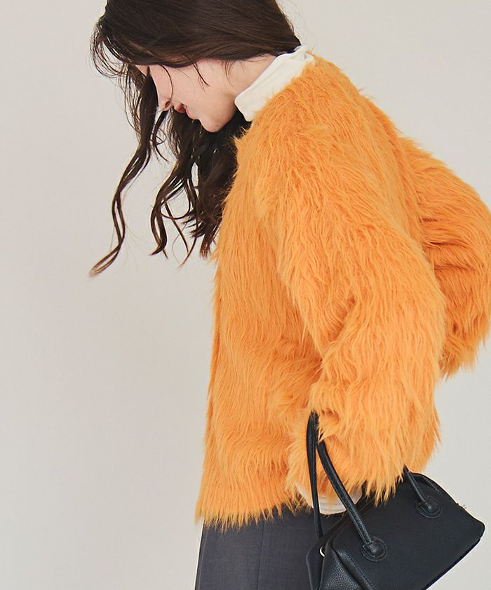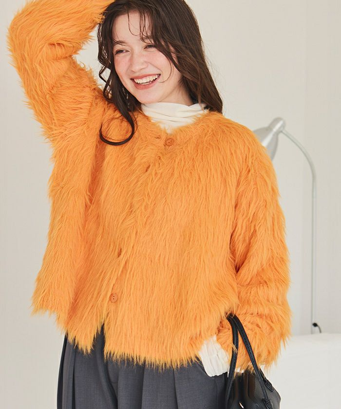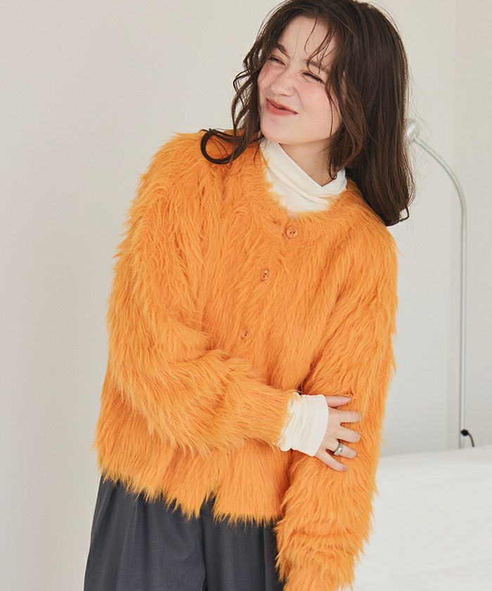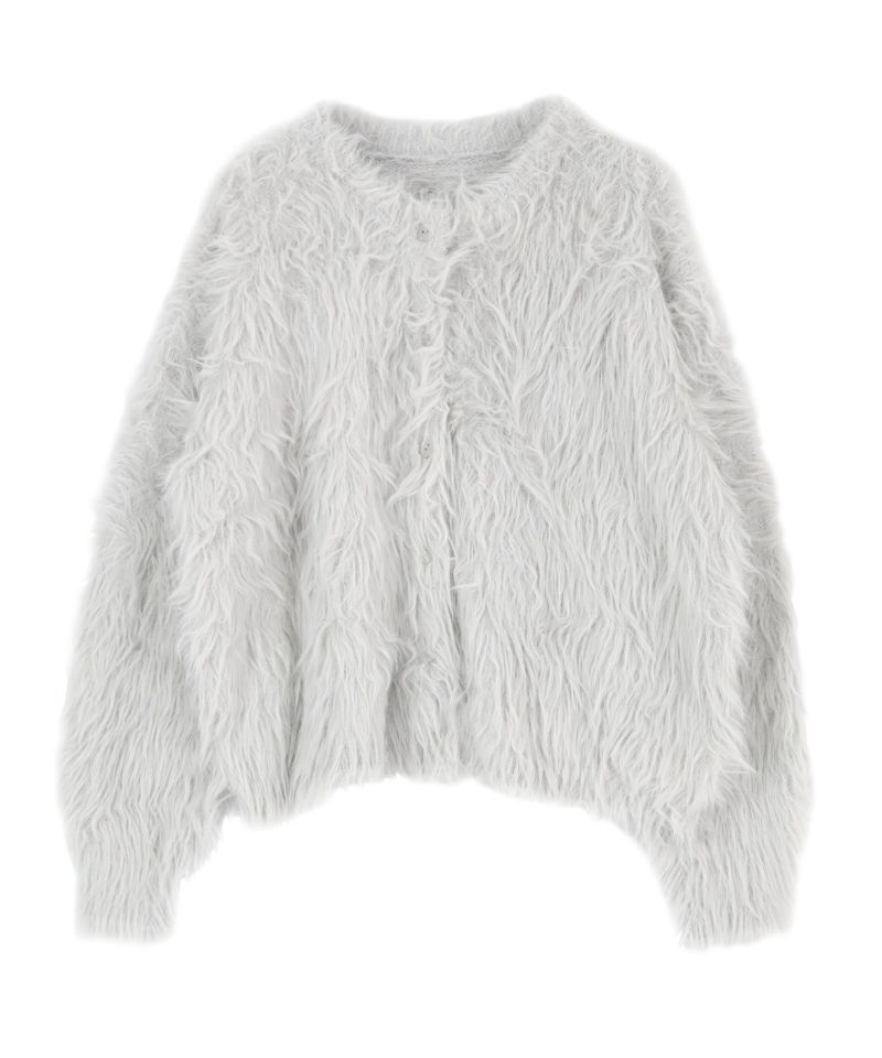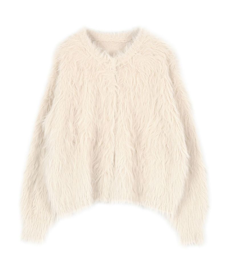 ・毛足の長いシャギー素材が特徴的なニットカーディガン