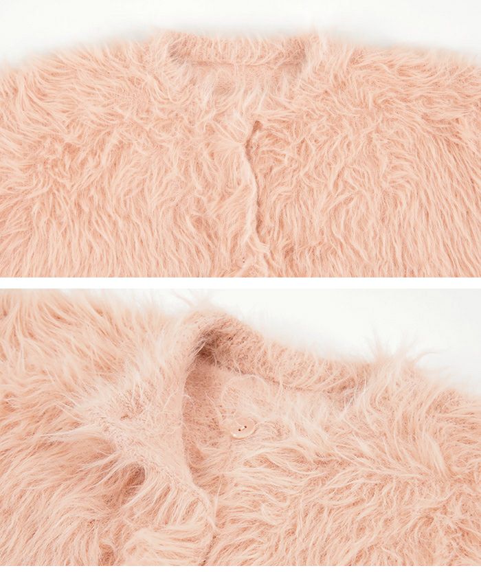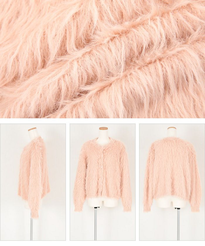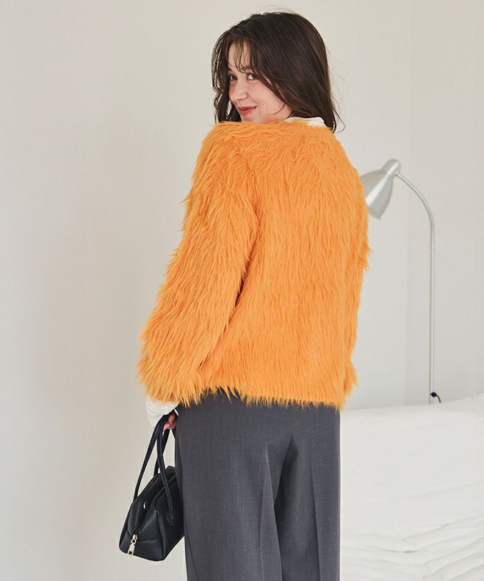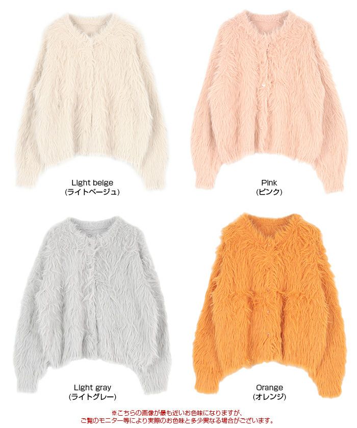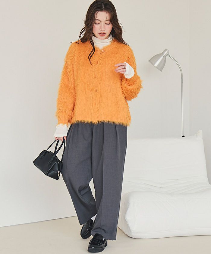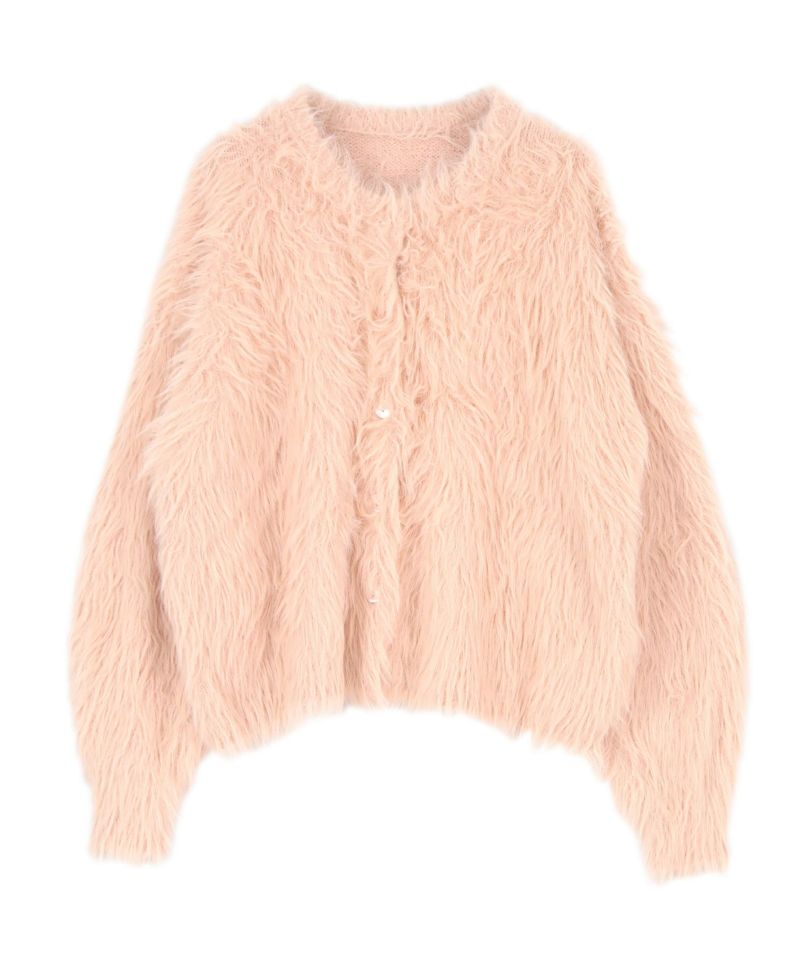 ・毛足の長いシャギー素材が特徴的なニットカーディガン