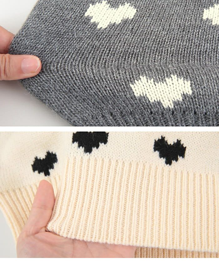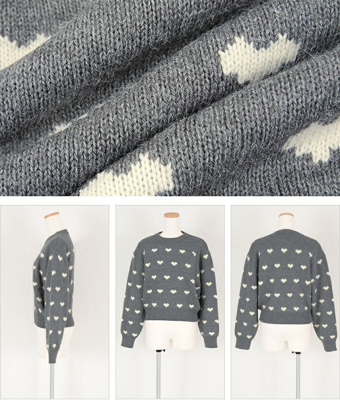 ・トレンド感のあるハートのジャガード柄編みがアクセント