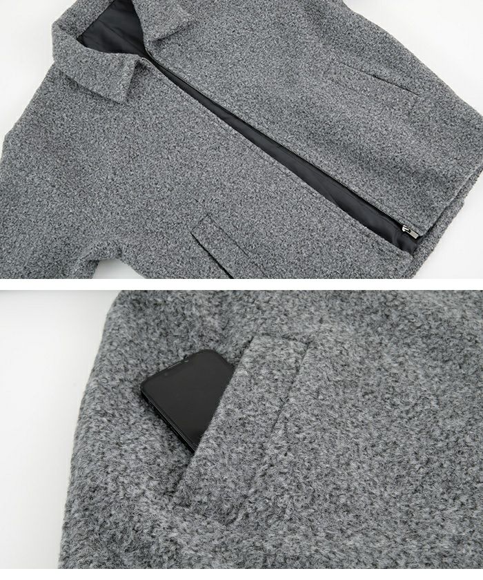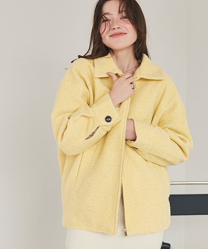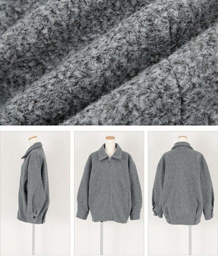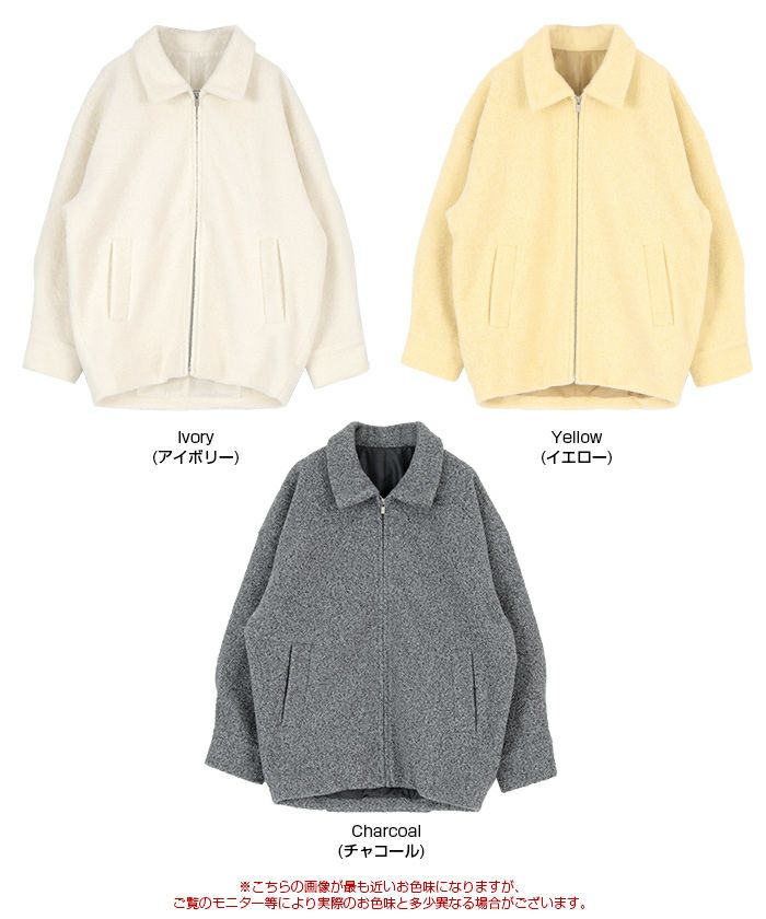 チャコールを購入しました。 杢調のカラーとしっかりとした厚みのある生地感で高見えします。 コクーンシルエットが可愛らしい雰囲気です。 フロントファスナーなので、着脱もスムーズです。 ゆったりとしたサイズ感なので、厚手のニットでも、もたつかずに着用出来そうです。