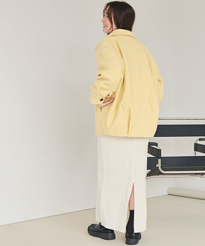 イエロー購入。 優しい色味で合わせやすいです!! 厚めのインナーの上に羽織ってもある程度ボリュームがある形なので窮屈さは全くないです。 形も可愛く襟を立てて着ると雰囲気がまた変わって良い! セットで同じカラーのスカートもGET!