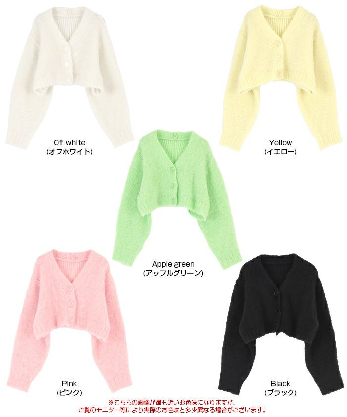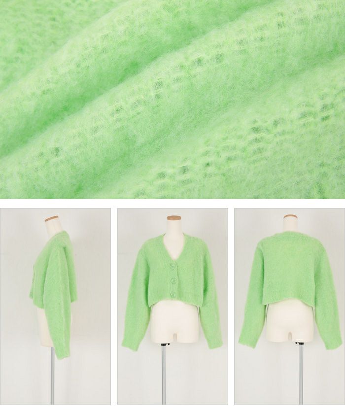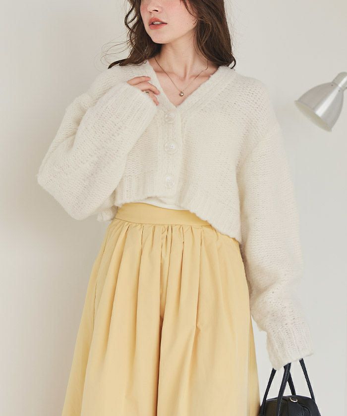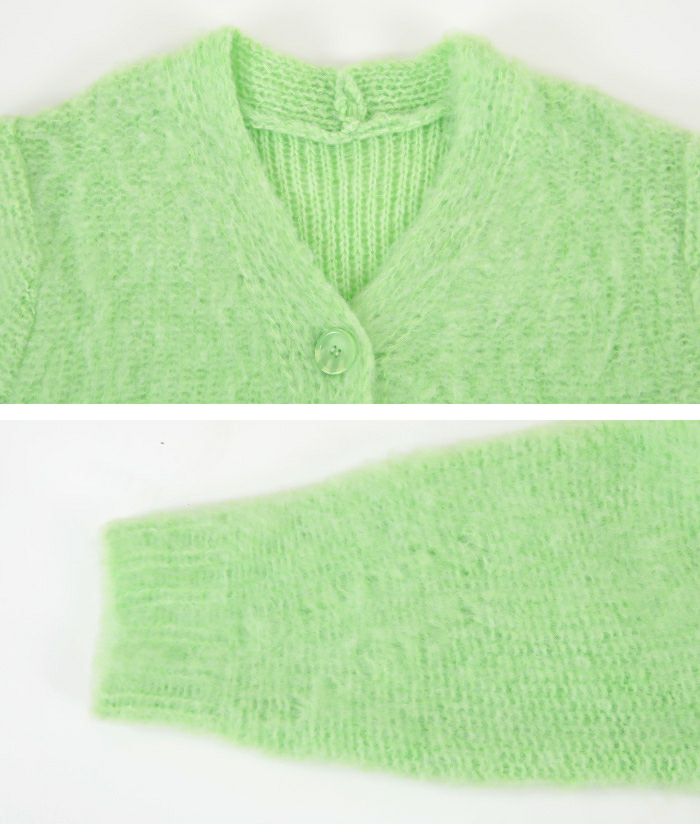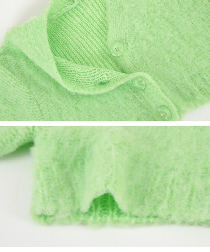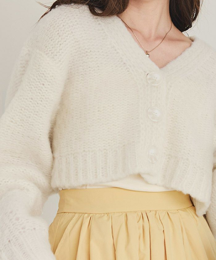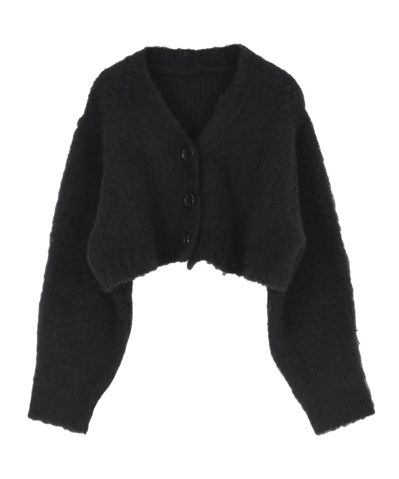 ・起毛された糸を編んでおり、思わず触れたくなるフワッとした柔らかな毛足が特徴のニットカーディガン。