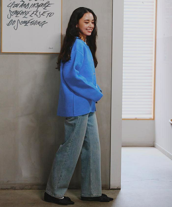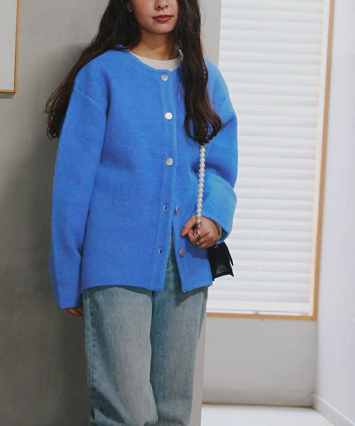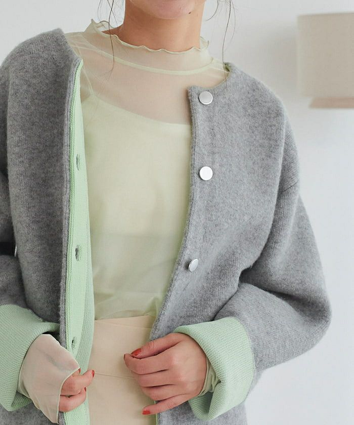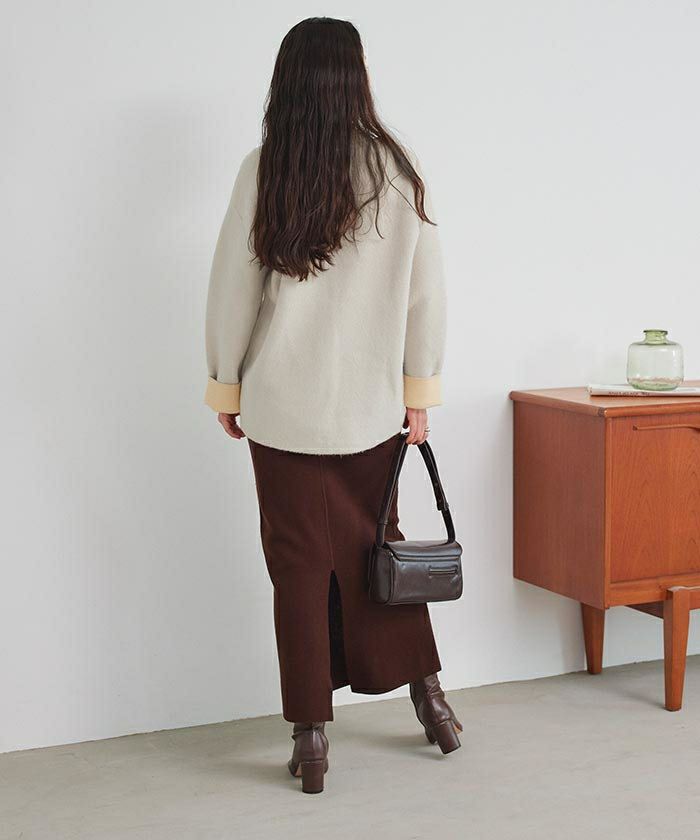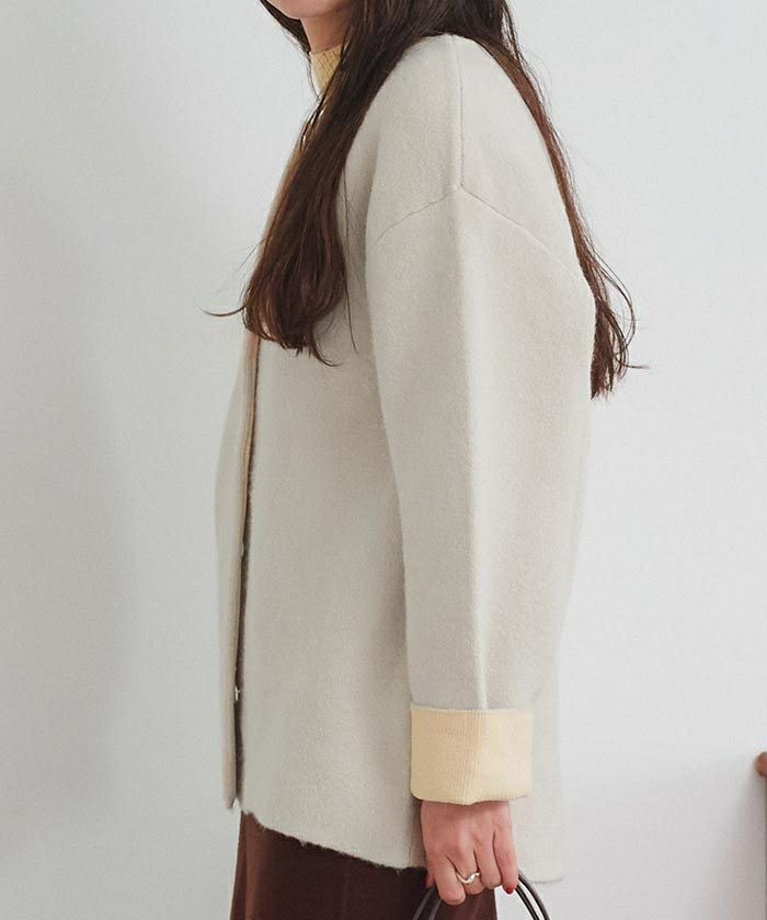 ・ダブルフェイスで裏面の色味も楽しめるニットコート/カーディガン