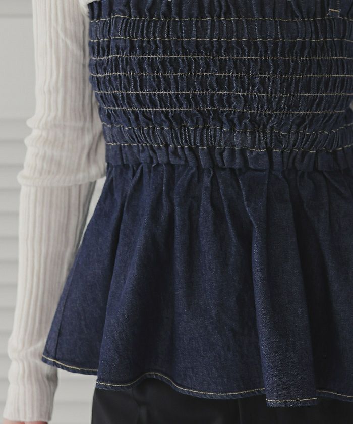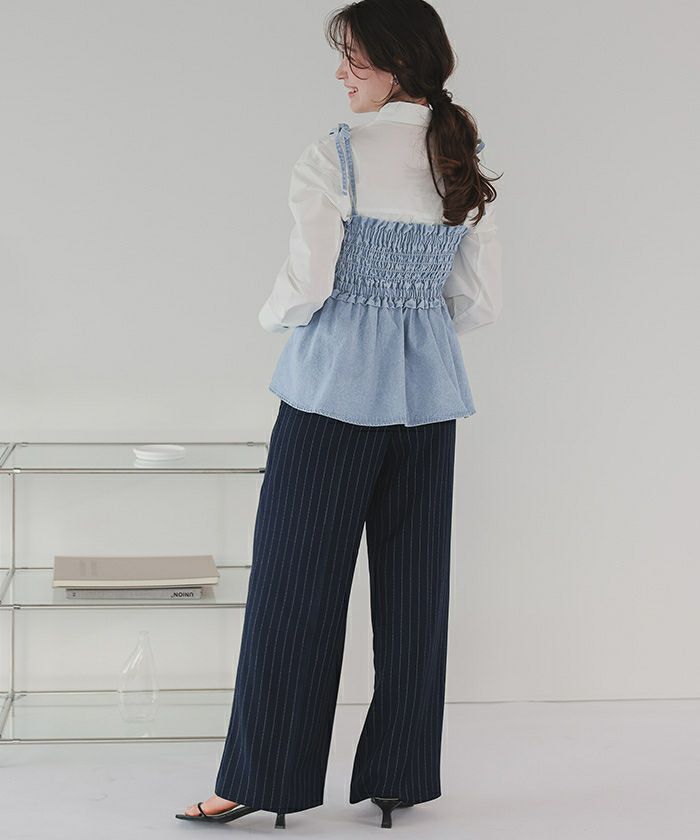 ・デニム素材なので華奢なストラップ×リボンでも甘過ぎず程良くカジュアルに着られる