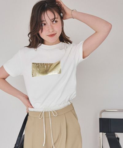・箔プリントデザインのTシャツ。