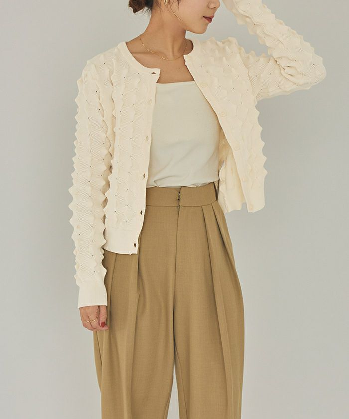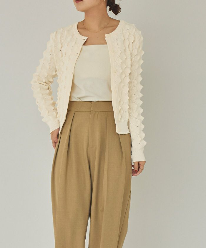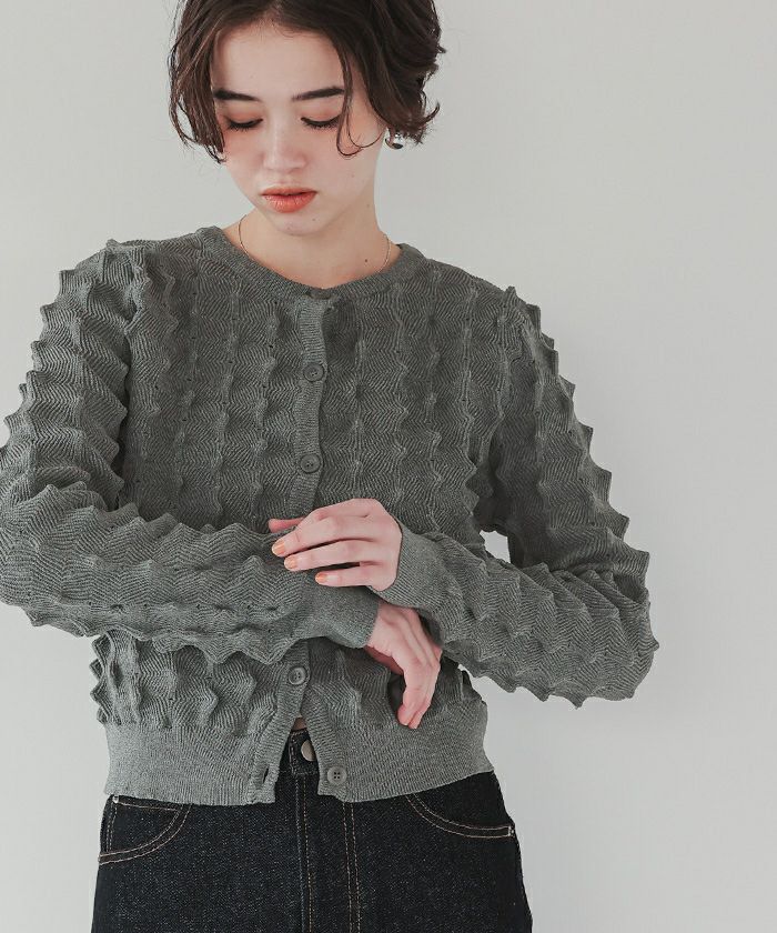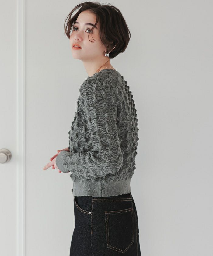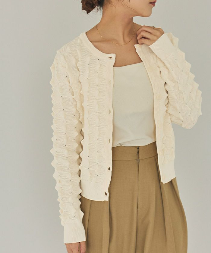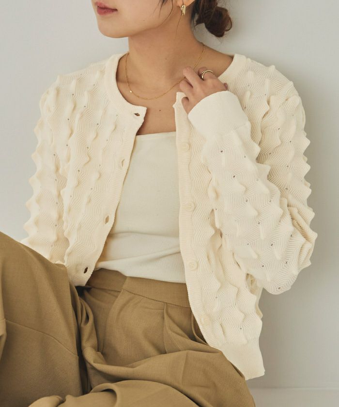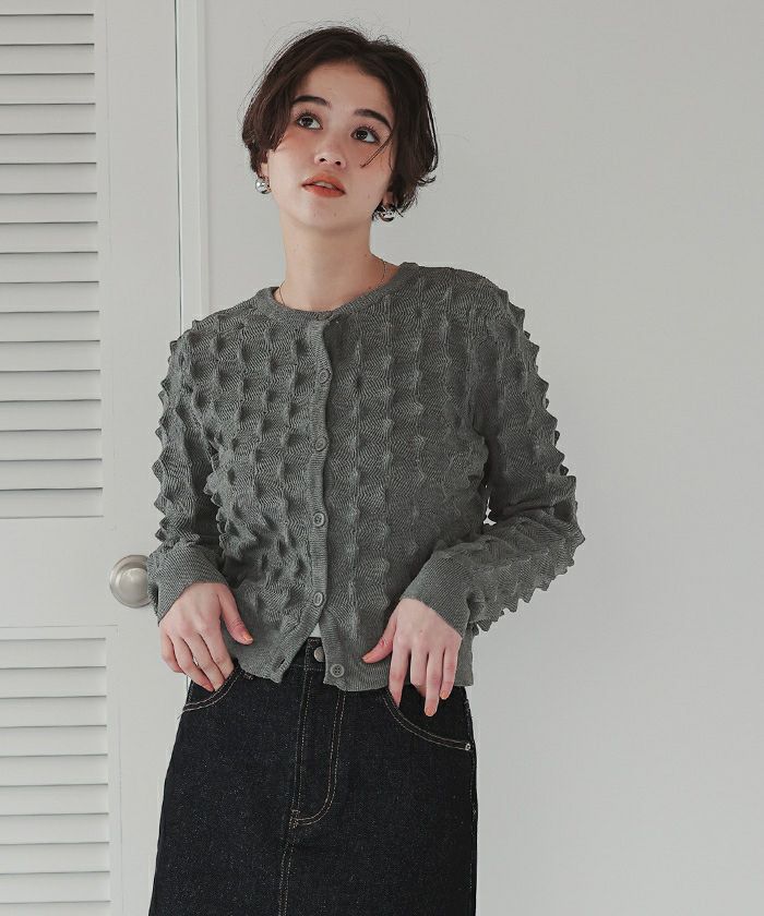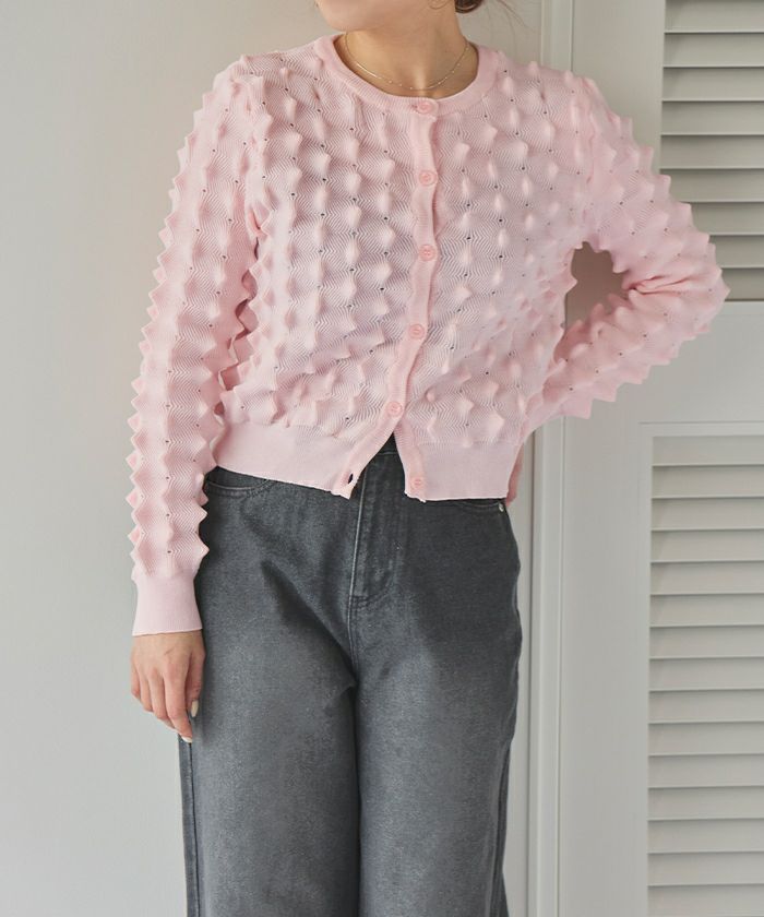 ・丸みのあるトゲトゲが可愛く着映えするカーディガン