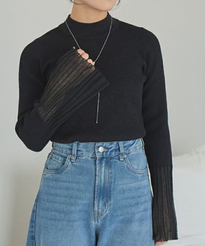 ・少しフレア調のシアー袖デザインに同系色の切り替えが大人可愛いを演出