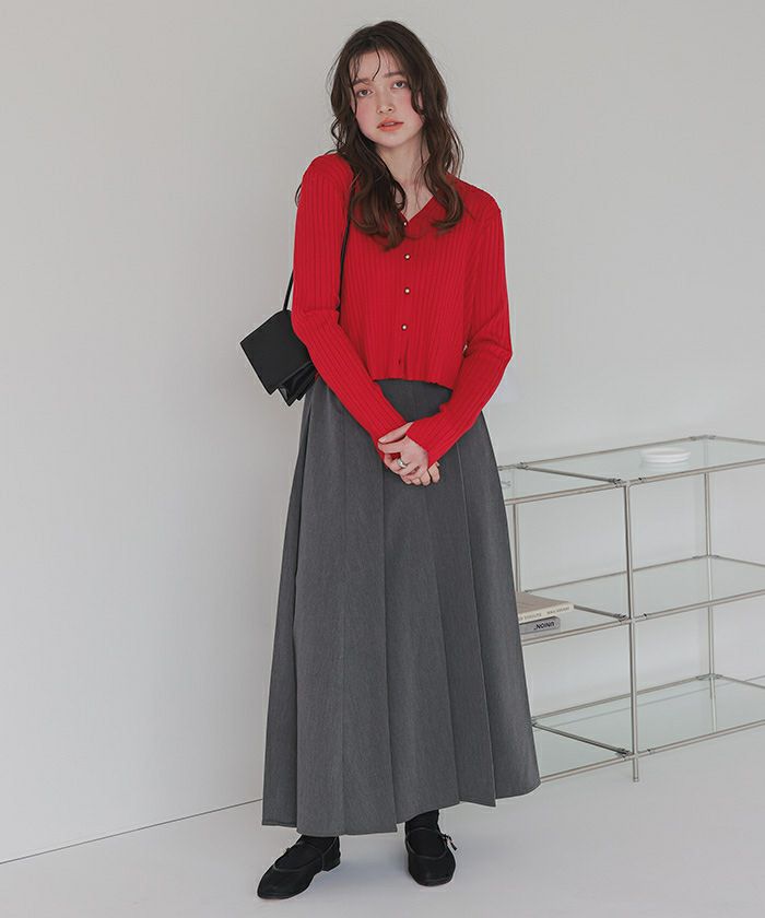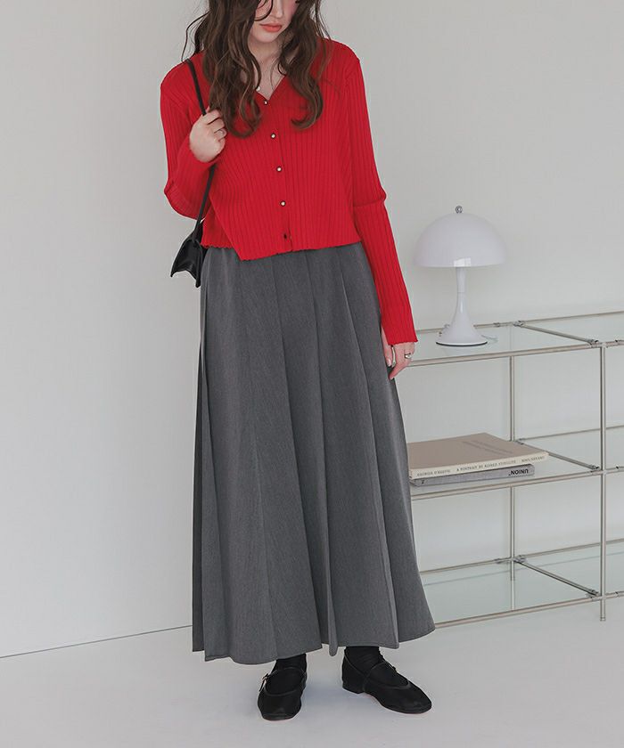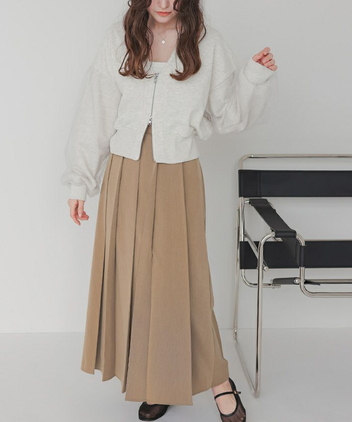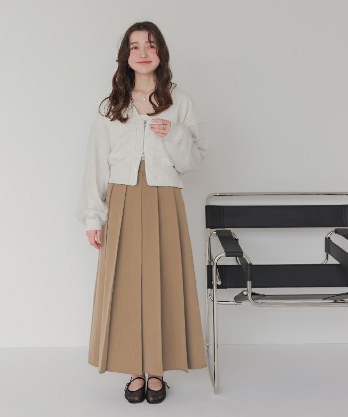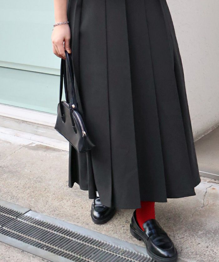 ・トラッドな雰囲気漂うプリーツスカート。動くたびに揺れて女性らしさを演出
