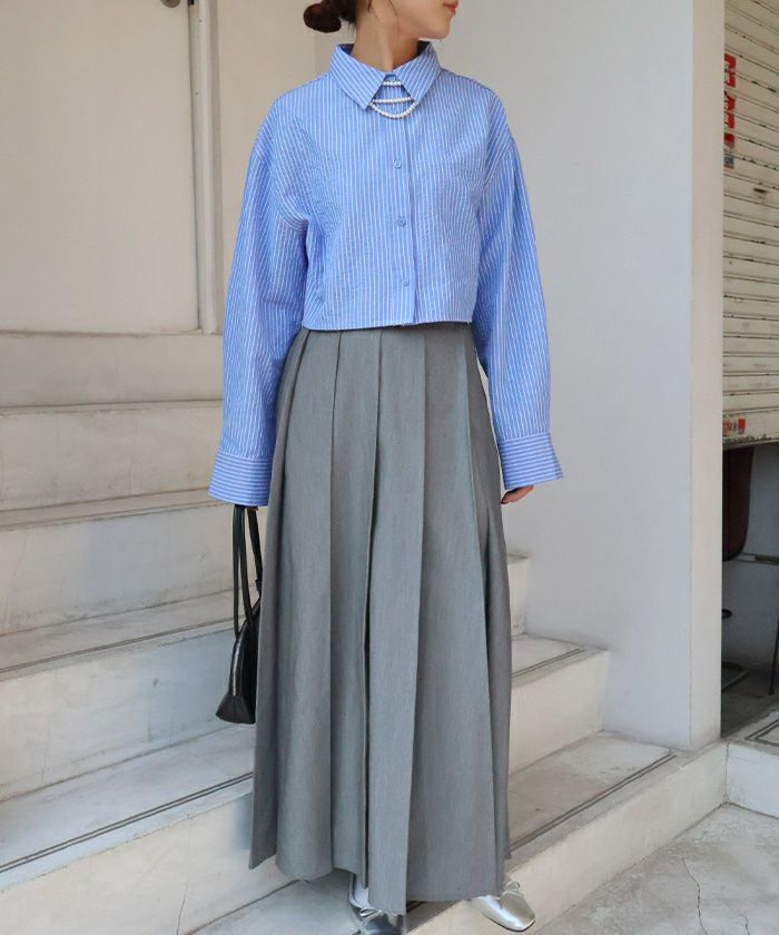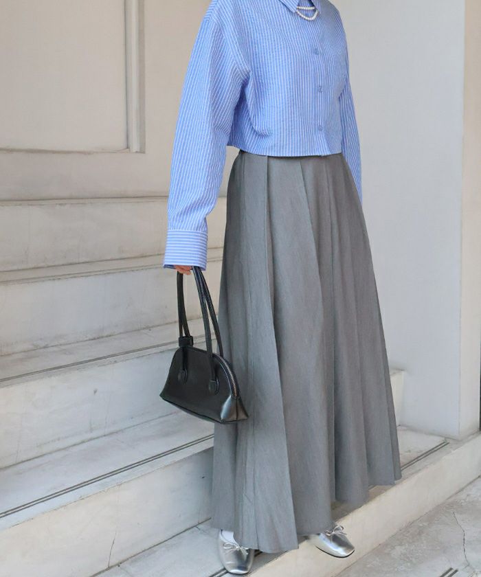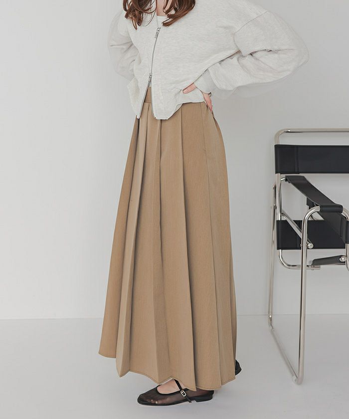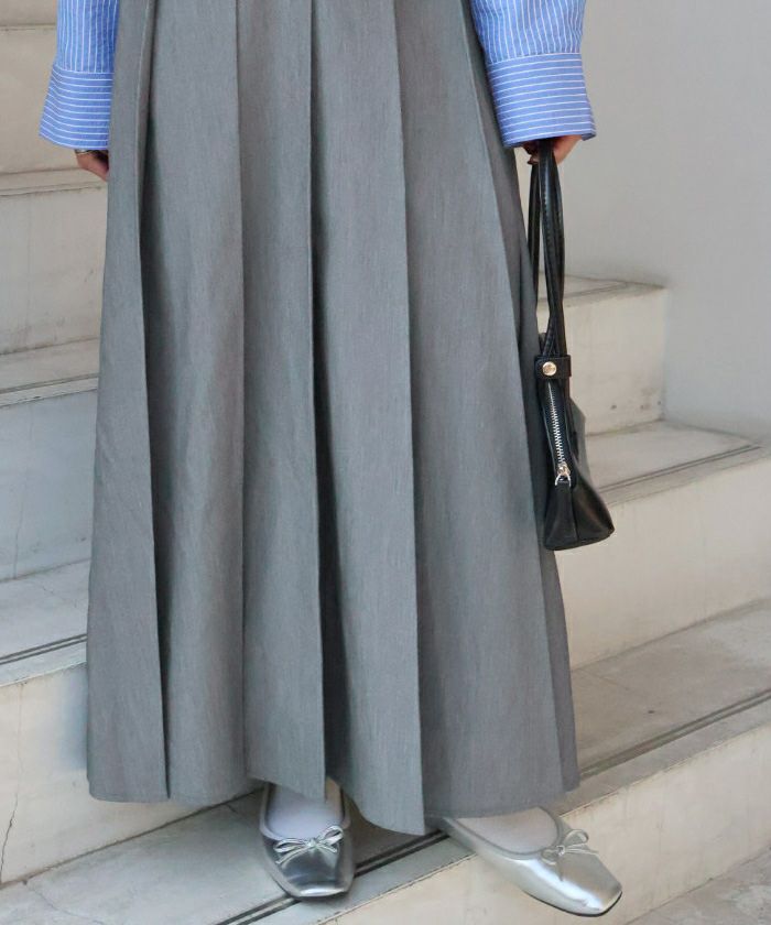 ・こだわりの絶妙なプリーツ幅と上品なツイル素材が魅力。程よいハリ感で美しいシルエットをキープ