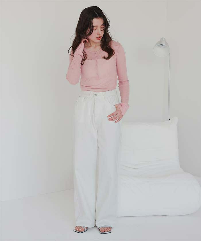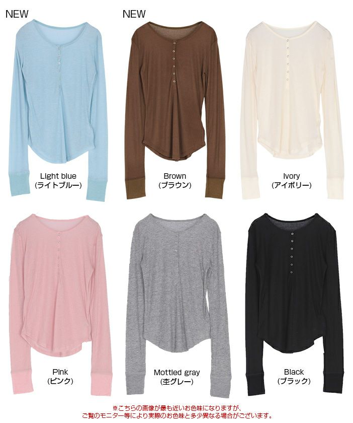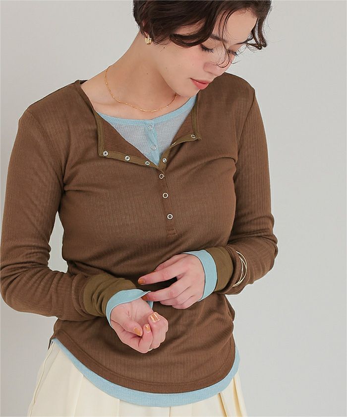 スッキリ着られるヘンリーネックトップス! シアートップスを重ね着して レイアードすると 凄く可愛いたです! 色違いが欲しくなりました!