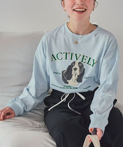 ・相良刺繍の立体感がある可愛いドッグがアクセントのビッグロンT