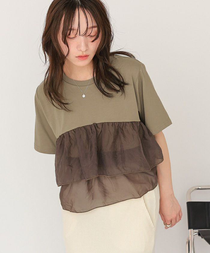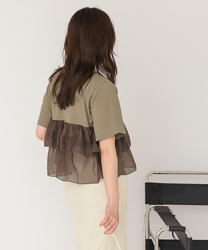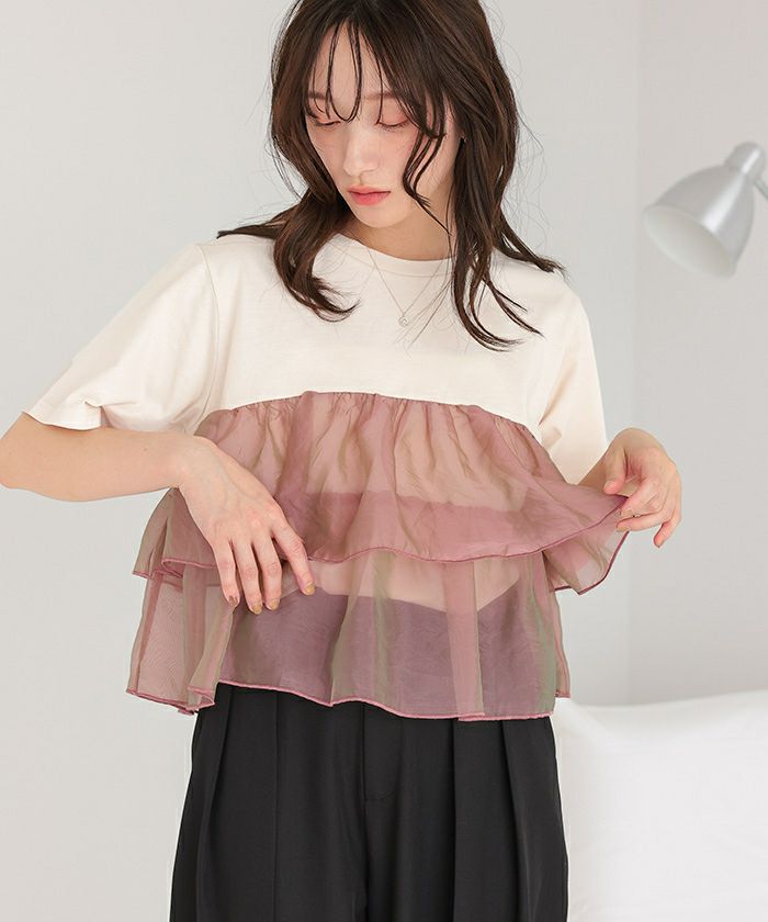 オーガンジーフリルドッキングTシャツ