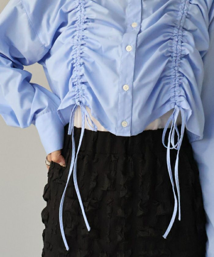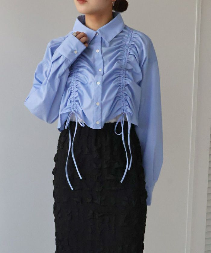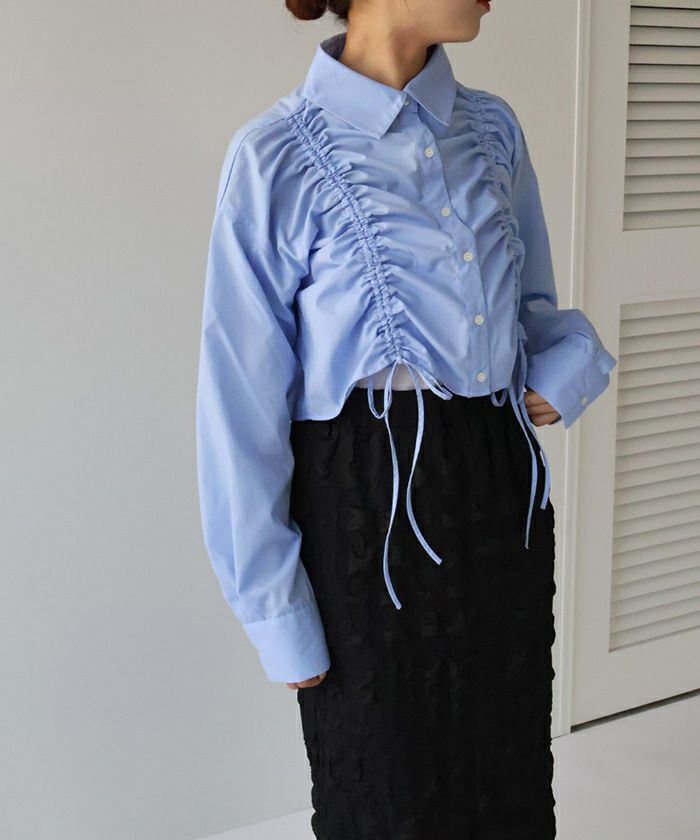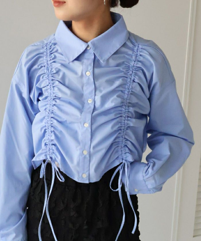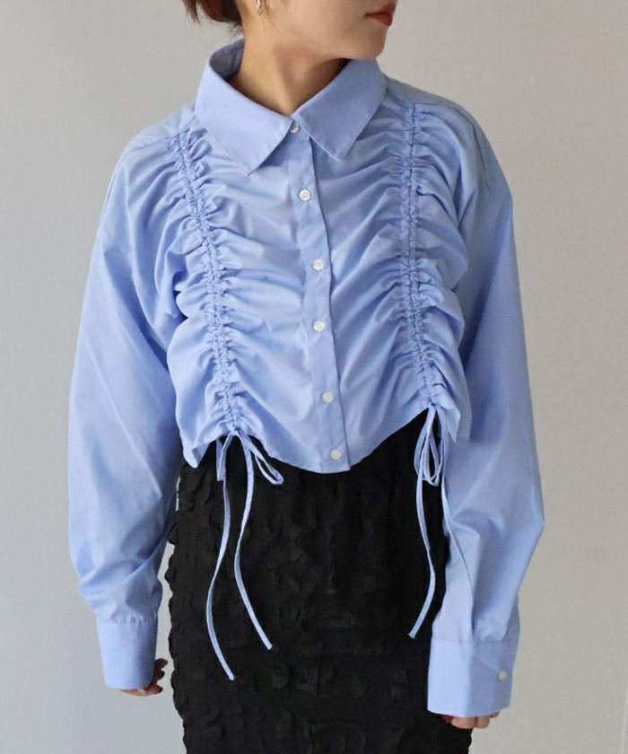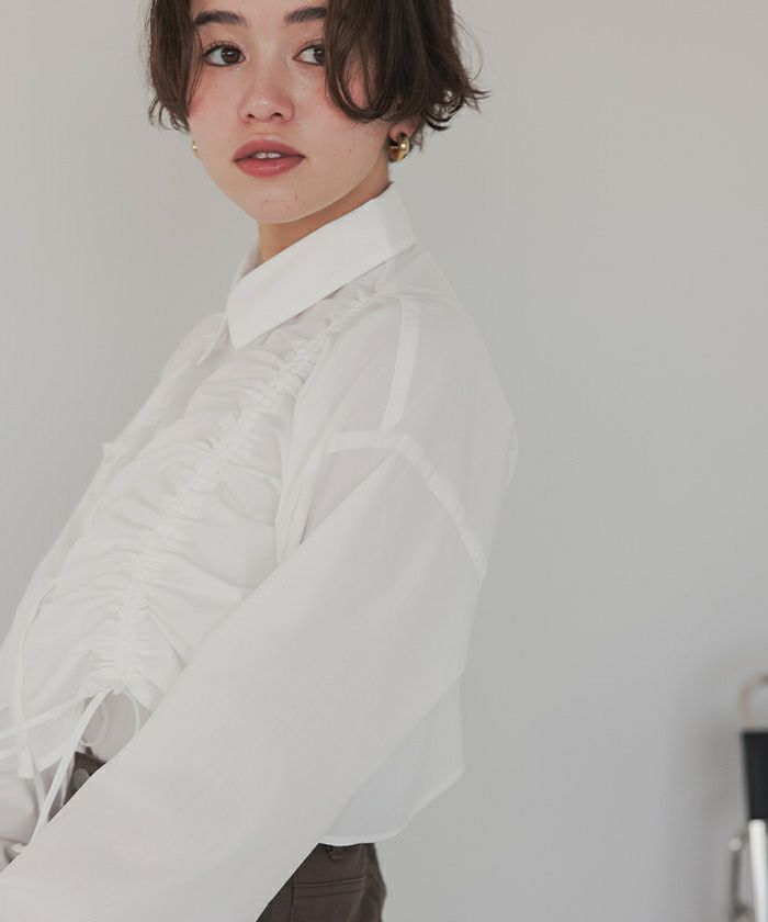 ・立体感のあるシャーリングデザインでトレンド感抜群のショートシャツ