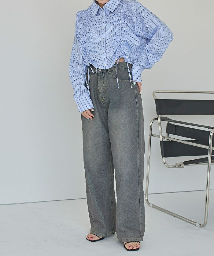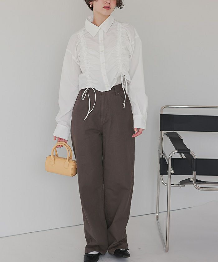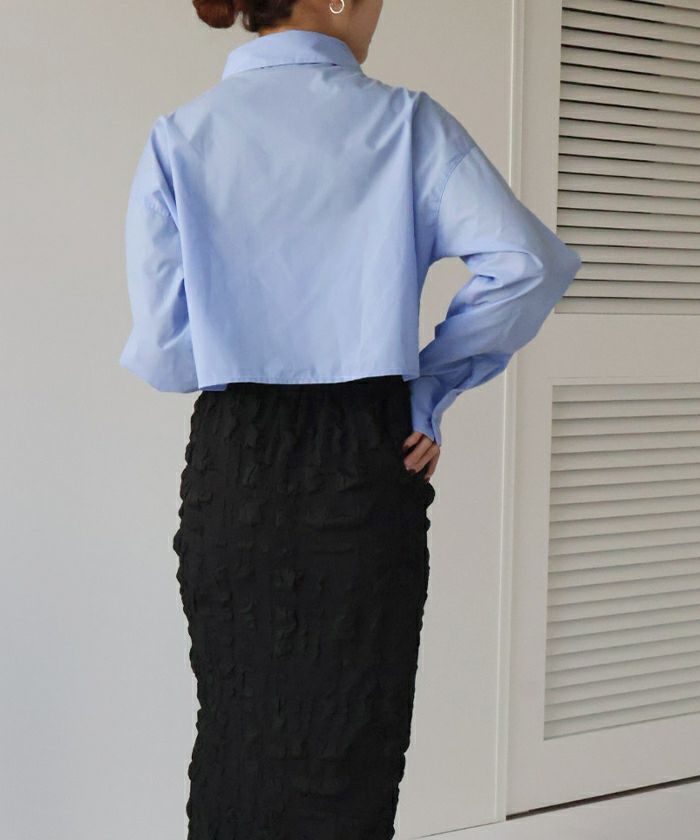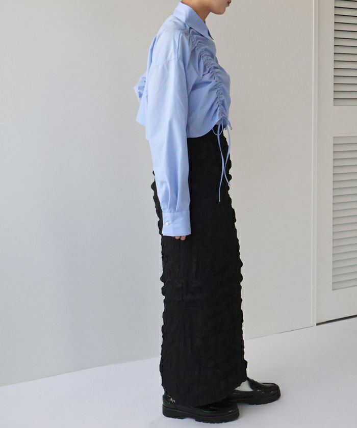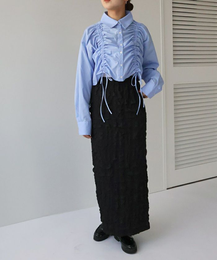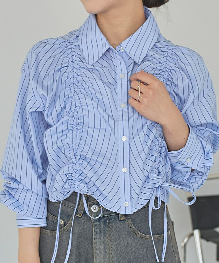 ・立体感のあるシャーリングデザインでトレンド感抜群のショートシャツ