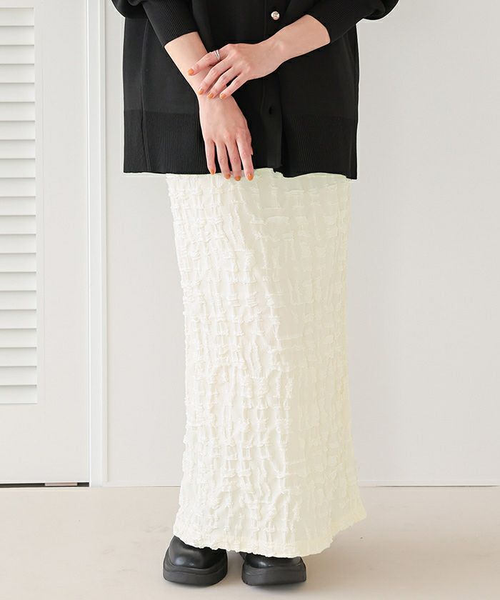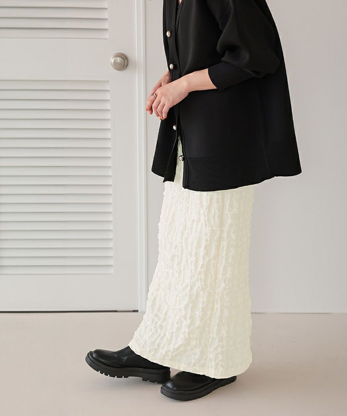 ウエストがゴムなので着脱がしやすくストレスフリーです!! ジャガード柄も可愛くコーデのポイントになるので様々なコーデに使用できそうです♪