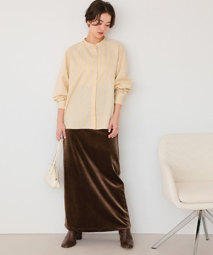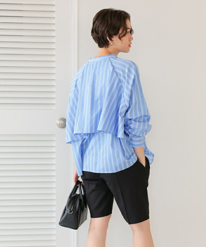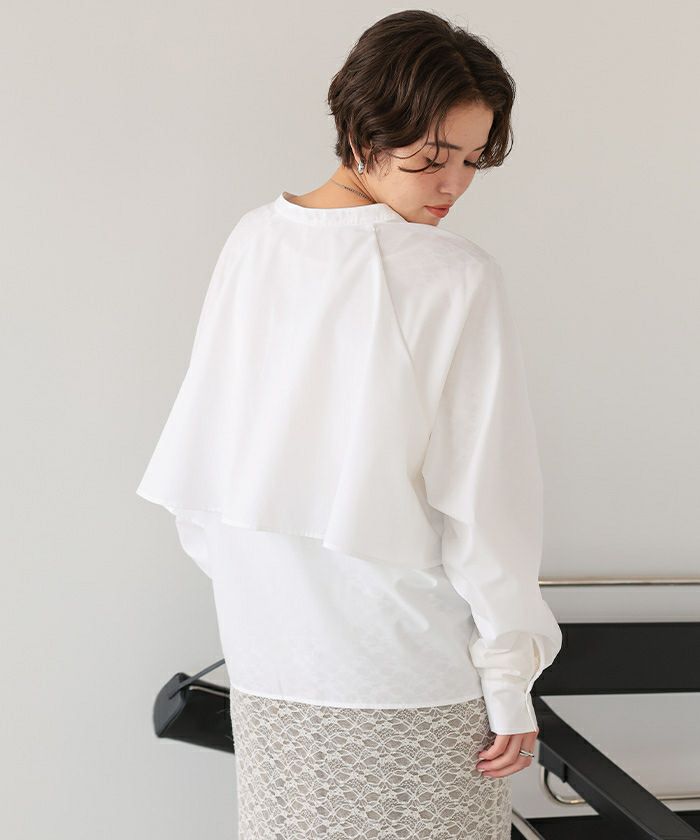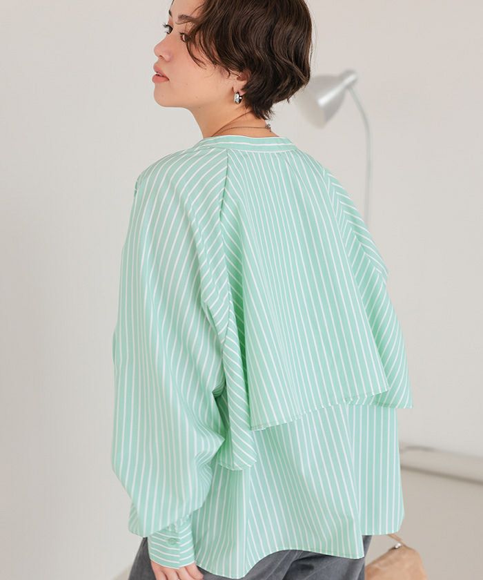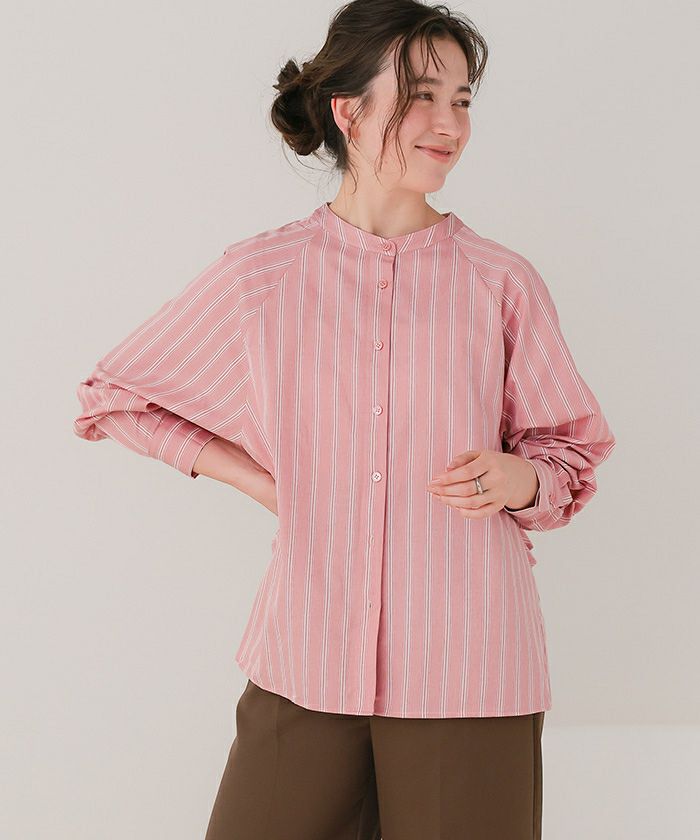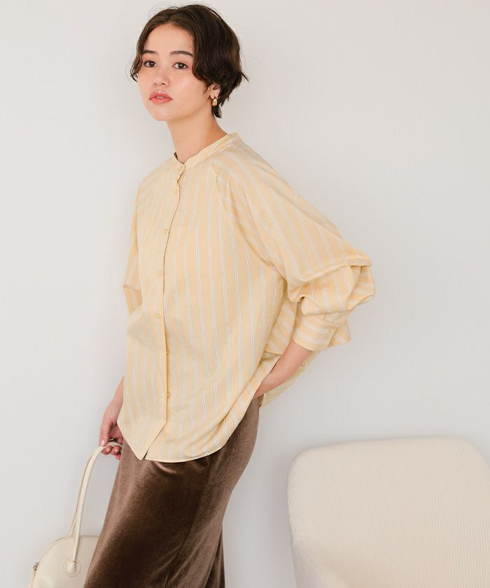 バックフリルバンドカラーシャツ